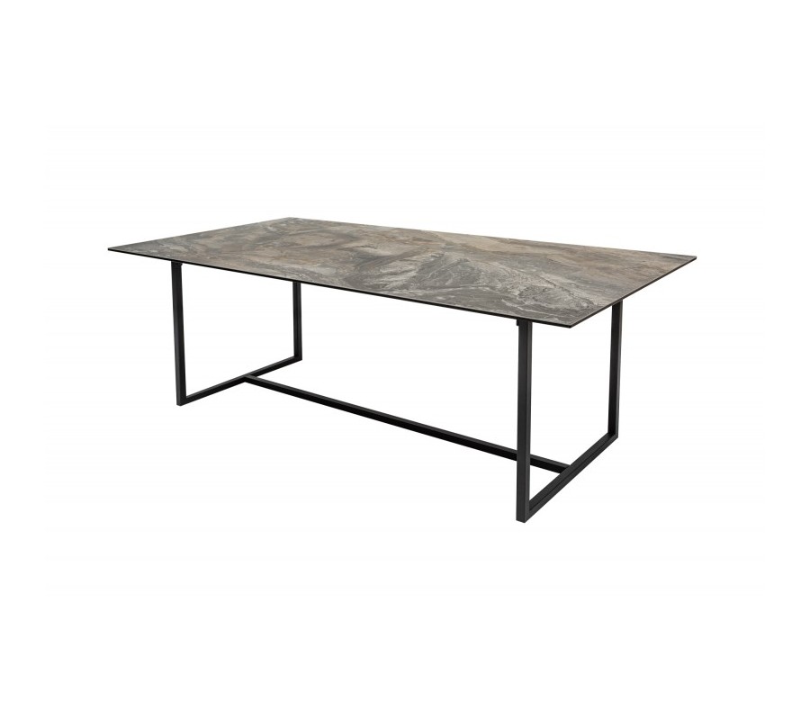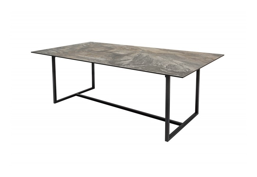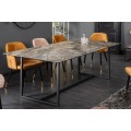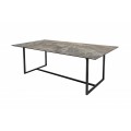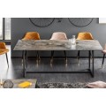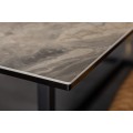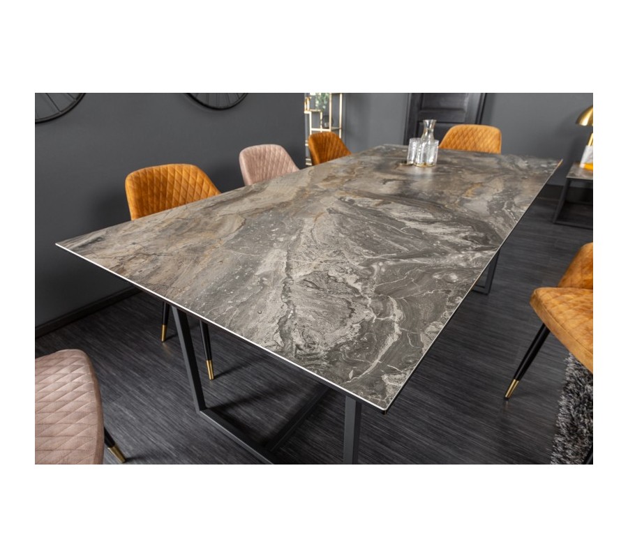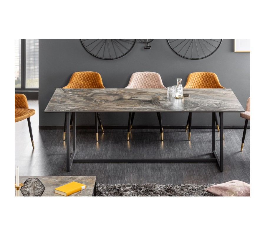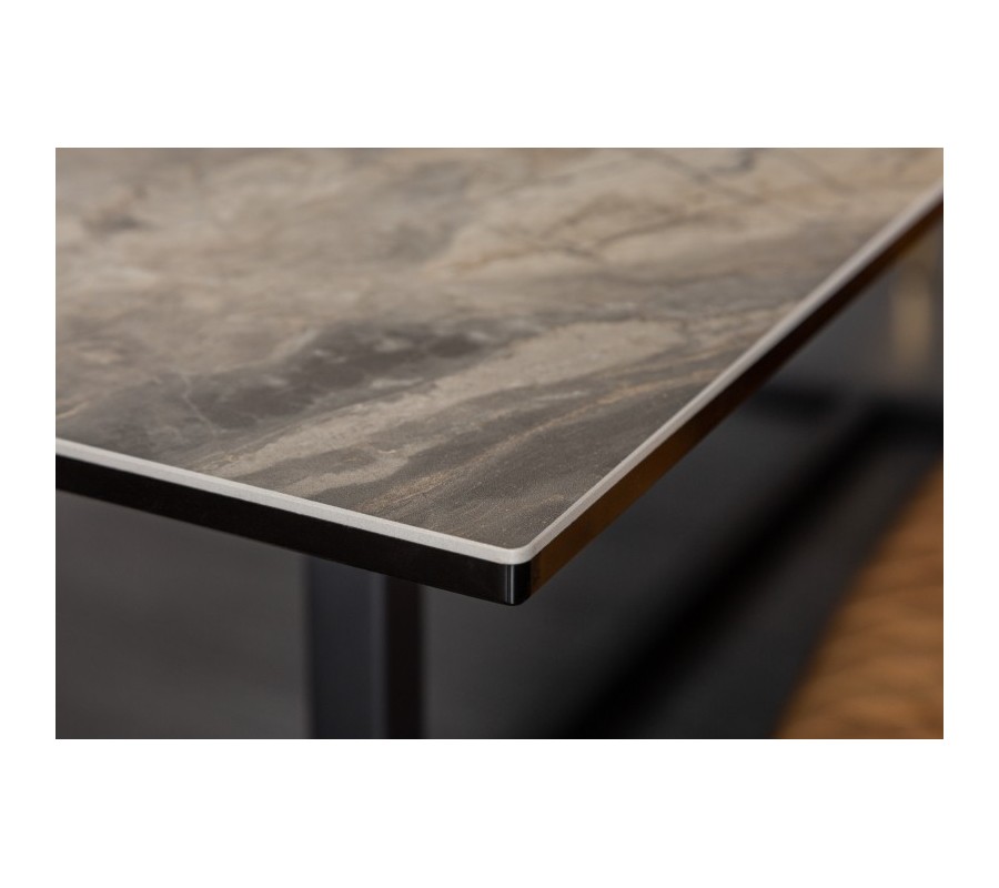 Jedinečný luxusný dizajn jedálenského stola Collabor je výsledkom kombinácie elegantnej keramickej dosky s mramorovým povrchom a kovovej konštrukcie v elegantnej čiernej farbe. Stolová doska je vďaka kombinácii bezpečnostného skla a keramickej doky hrubá len 13cm a vytvára tak jedinečnú tenkú a elegantnú líniu. Kovové nohy v nadčasovom geometrickom tvare sú dokončené čiernou práškovou povrchovou úpravou a s mramorovou doskou vytvárajú zaujímavý kontrast. Tento štýlový kúsok môžete kombinovať so stoličkami s príjemným textilným či koženým čalúnením. Okrem moderných domácností s industriálnym nádychom dokonale zapadne do priestorov s luxusnými kamennými povrchmi a Art-deco prvkami.