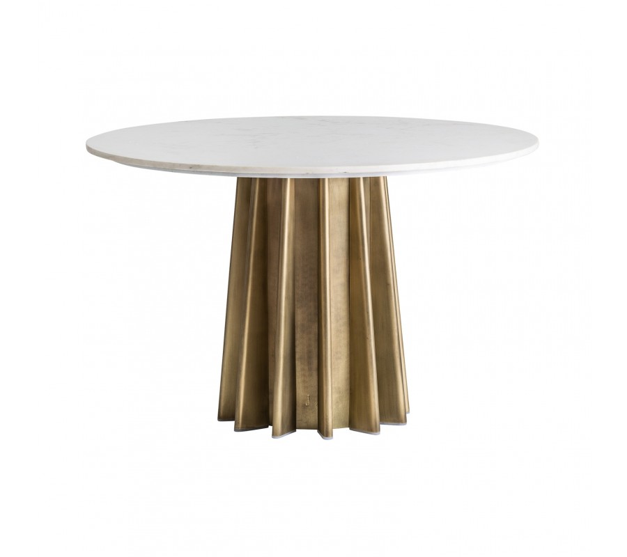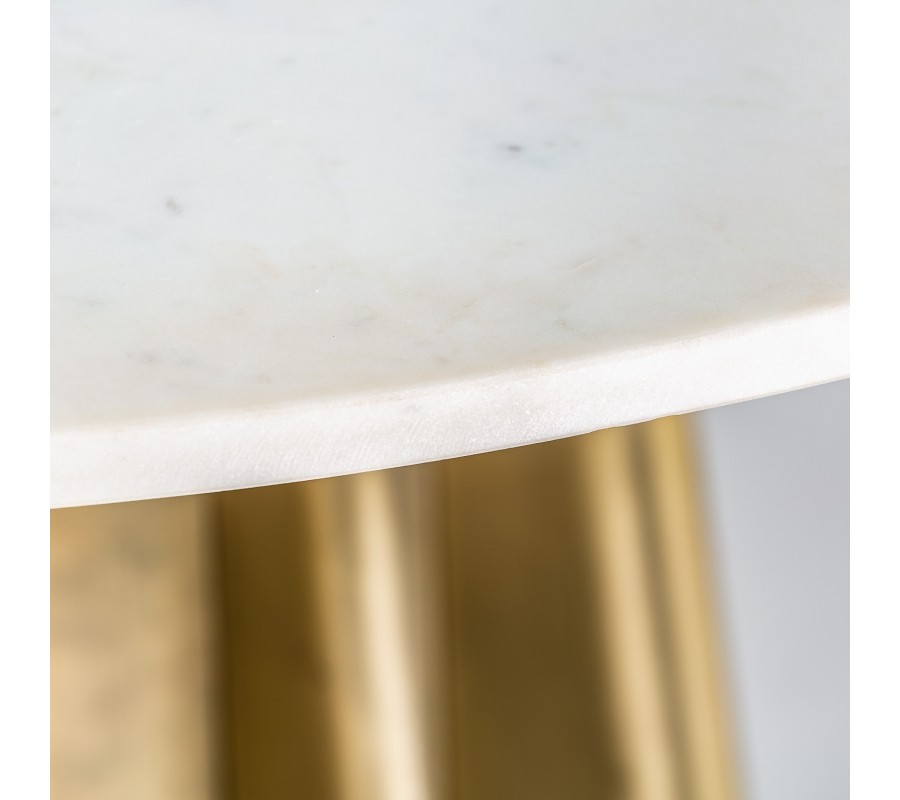 Art-deco luxusný okrúhly jedálenský stôl Lezey s kruhovou mramorovou doskou a zlatou podstavou 120cm