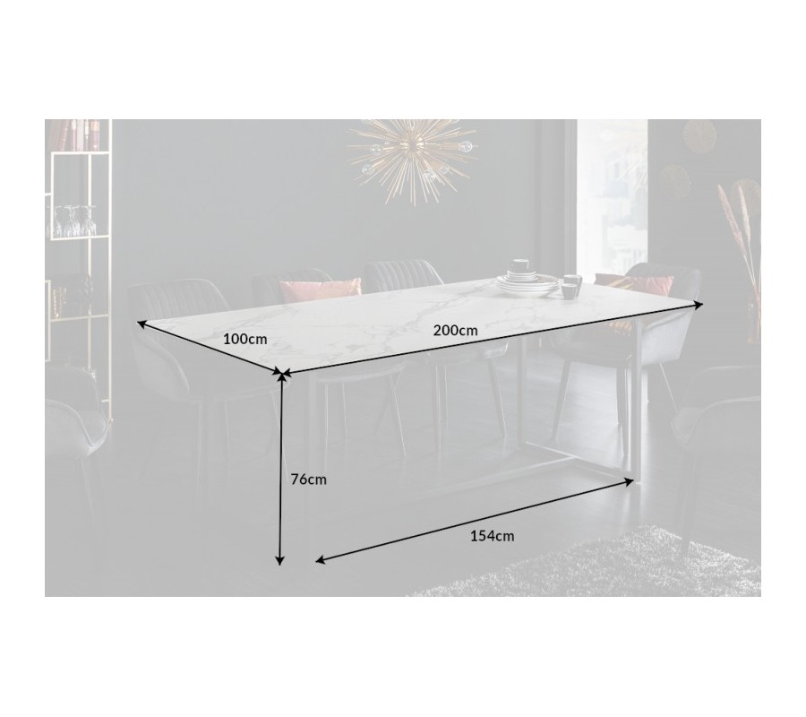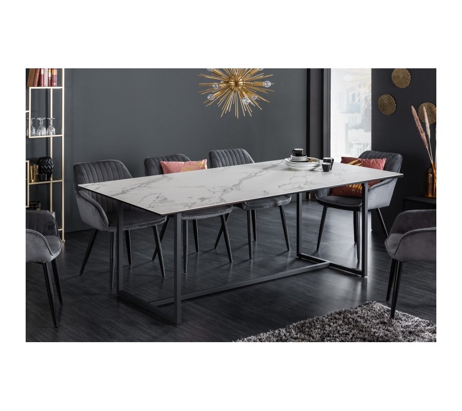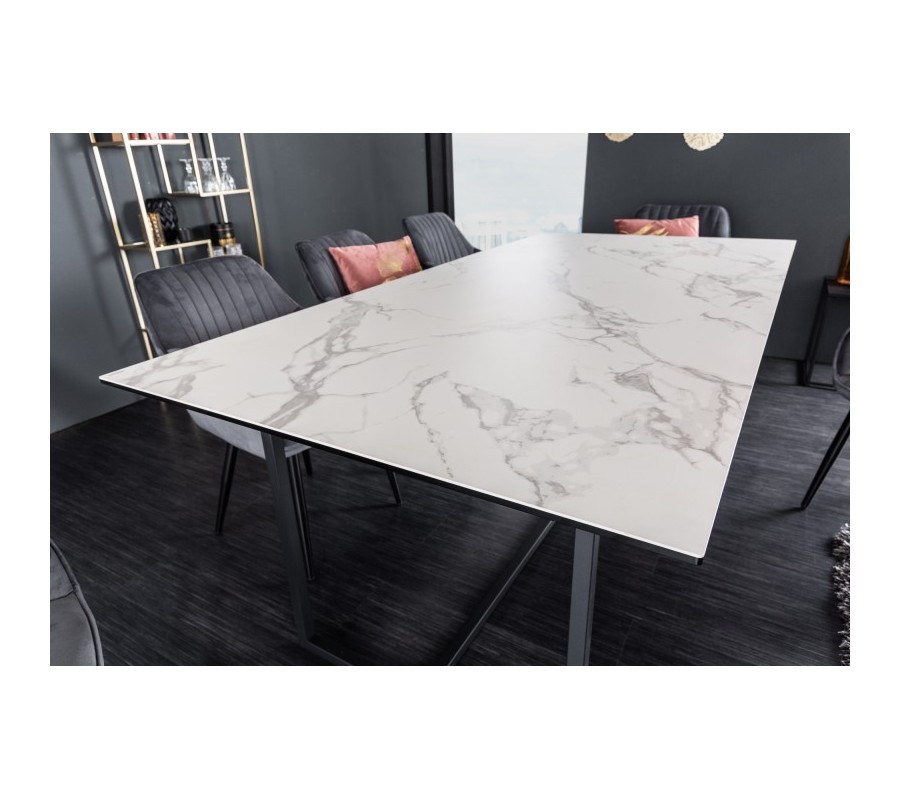 Moderný mramorový jedálenský stôl Collabor bielej farby z keramiky a kovu 200cm