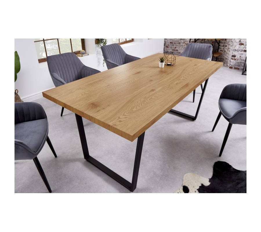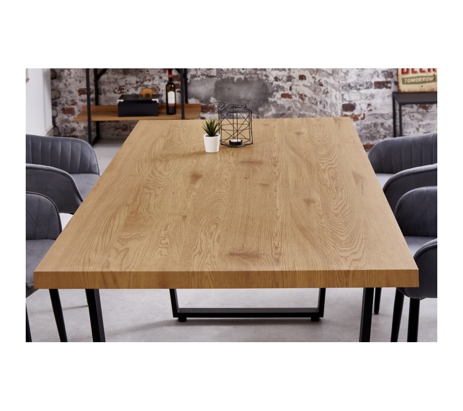 Štýlový jedálenský stôl Westford je vyrobený z dreva v prírodnom dubovom odtieni s čiernymi kovovými nohami. Táto kontrastná kombinácia vytvára zaujímavý industriálny vzhľad, ktorý vynikne v každom modernom interiéri. Odporúčame jedálenský stôl Westford doplniť čalúnenými stoličkami a minimalistickými doplnkami z kovu. Stôl je ideálny pre stolovanie 6-8 osôb.