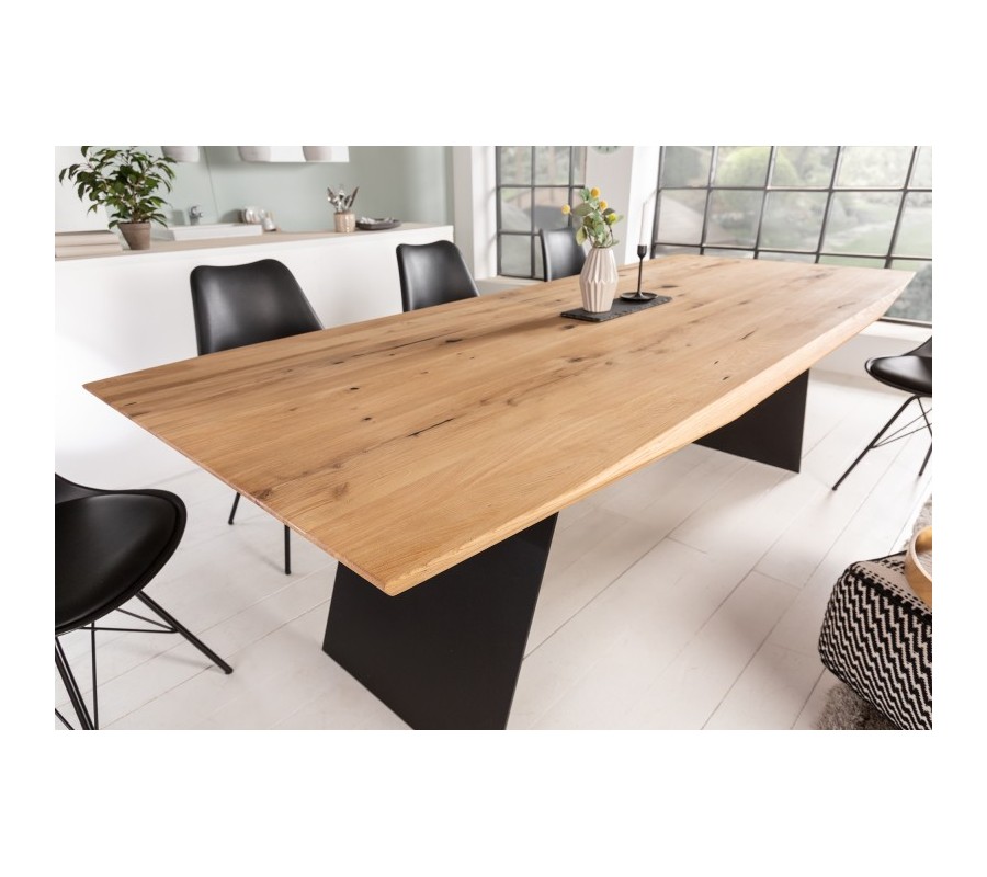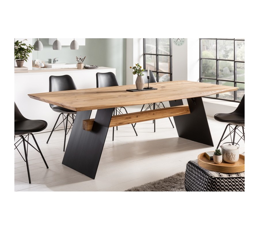 Unikátny jedálenský stôl Harrington je vyrobený z kvalitného masívneho dubového dreva. Je vhodným kúskom pre milovníkov industriálneho štýlu a inovatívneho dizajnu, ktorých zaujme najmä prírodný materiál v svetlohnedom odtieni v kombinácii s čiernymi kovovými nohami. Priemyselný dizajn je dotvorený aj dreveným trámom zasadeným v konštrukcii. Stôl Harrington zapadne predovšetkým do priestrannejších jedální, obývačiek či konferenčných miestností ladených v modernom alebo industriálnom štýle. Vynikne v svetlejších priestoroch a dokonalý dojem vytvoríte kombináciou s ďalším masívnym nábytkom, kovovými doplnkami a čalúnenými koženými stoličkami. Stôl je ideálny pre stolovanie 6-8 ľudí.