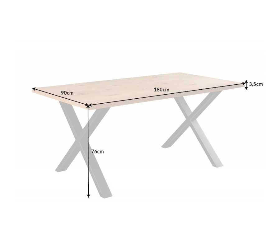 Dizajnový jedálenský stôl Westford zaujme vďaka svojmu jednoduchému minimalistickému dizajnu. Povrchová doska je doplnená o čierne kovové nohy v tvare písmena X. Táto kontrastná kombinácia vytvára zaujímavý industriálny vzhľad, ktorý vynikne v každom modernom interiéri. Odporúčame jedálenský stôl Westford doplniť čalúnenými stoličkami a minimalistickými doplnkami z kovu. Stôl je ideálny pre stolovanie 6-8 osôb.