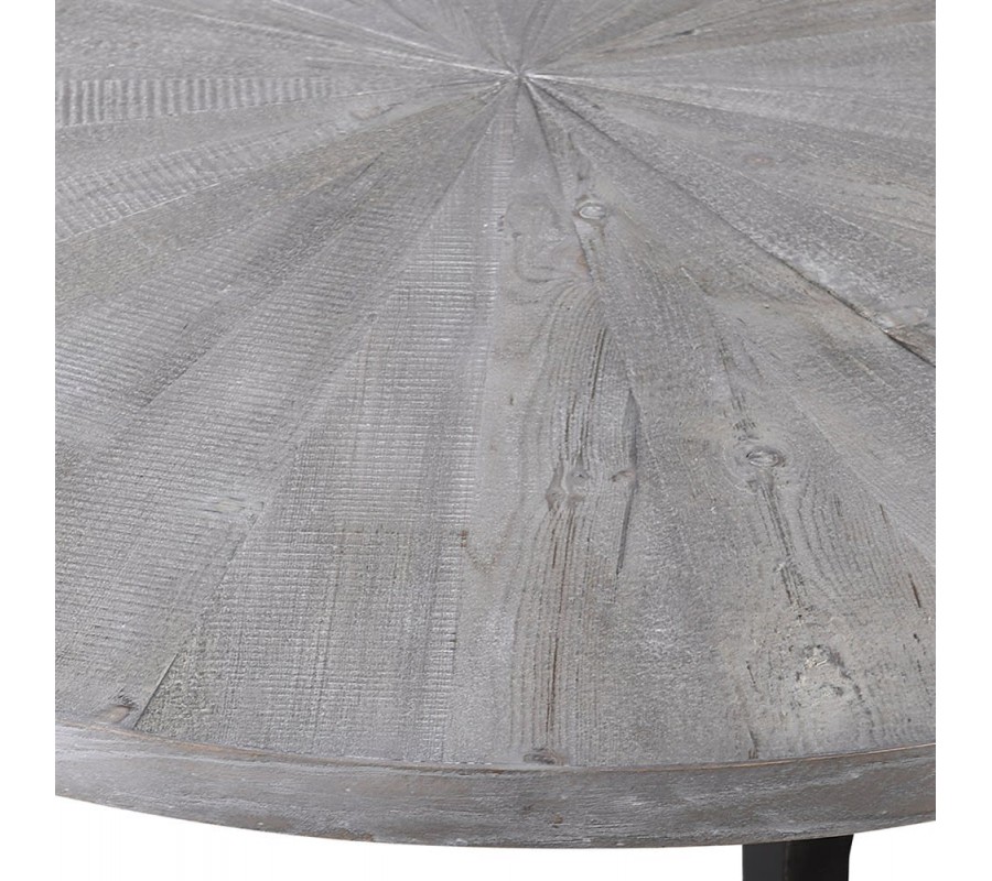 Vintage okrúhly jedálenský stôl sivej farby z masívu a s čiernymi kovovými nohami 150 cm