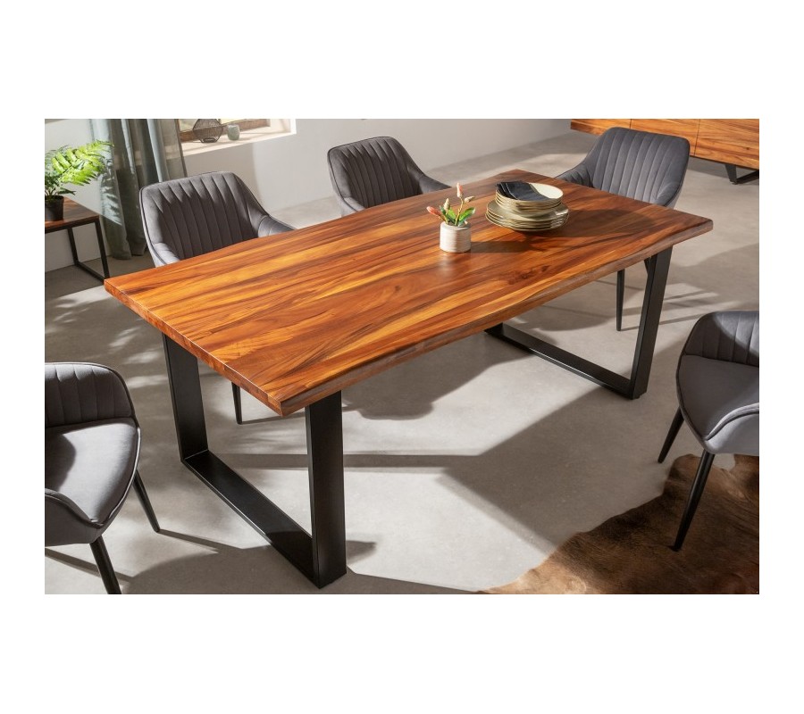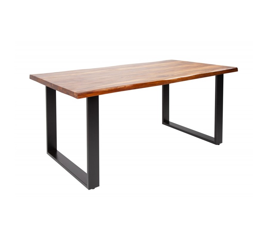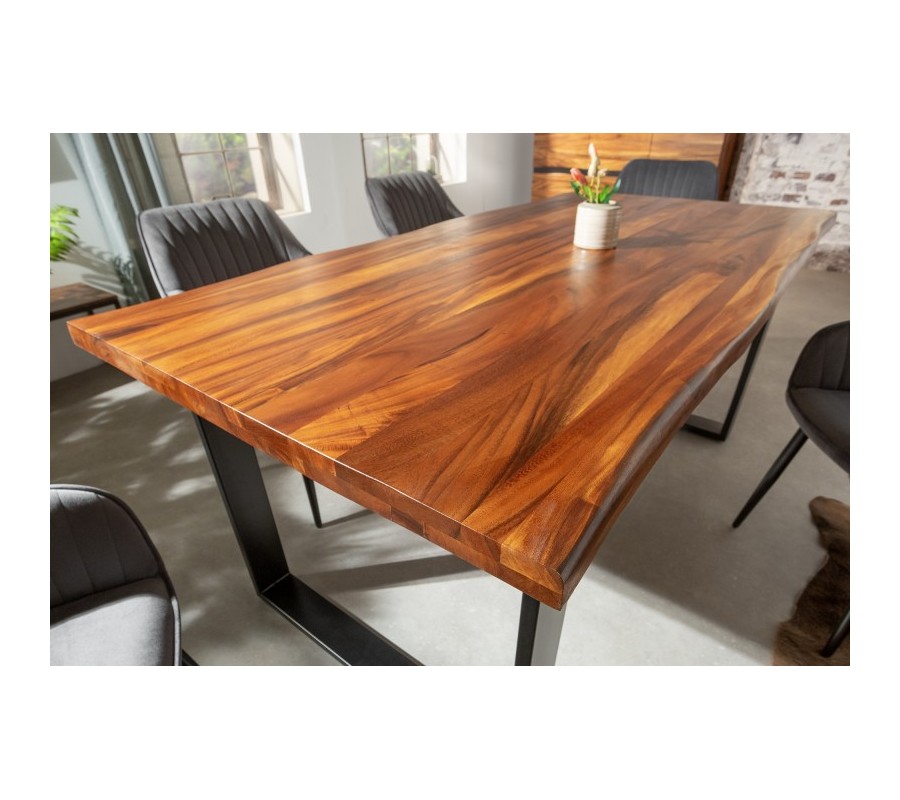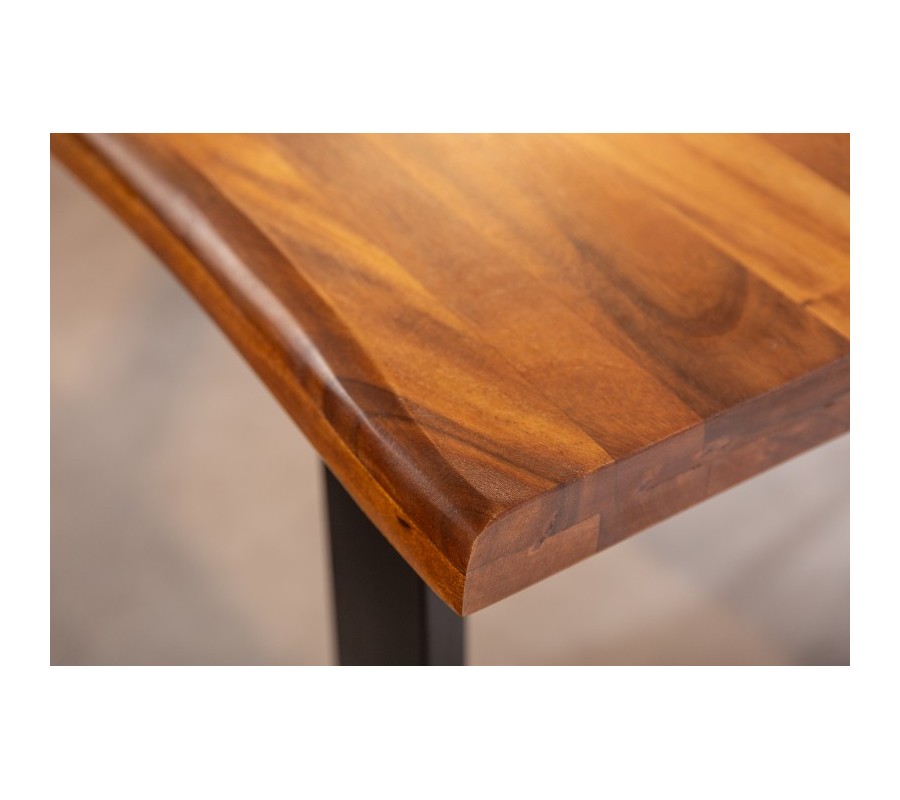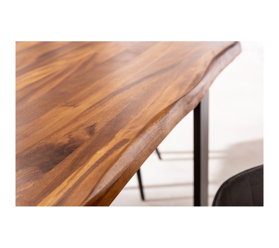 Jedálenský stôl Steele Craft na prvý pohľad môže pôsobiť veľmi bežne a jednoducho, ale jeho unikátny čierny kovový základ a nádherne spracovaná vrchná doska v prírodnej hnedej farbe spoločne vytvoria jedinečný, naturálny pocit v každej jedálni. Horná doska jedálenského stola po jej bokoch kopíruje tvar kmeňa vo forme voľných oblúkov. Povrchovou úpravou je zvýraznená prírodná štruktúra dreva vo forme jeho letokruhov a je vyrobená dyhovaním z viacerých kúskov dreva s rôznou orientáciou. Celková konštrukcia stola špeciálne vynikne v spojení napríklad s tmavými čalúnenými stoličkami, čo vytvorí nádhernú farebnú kombináciu pri ktorej sa zvýrazní vrchná doska stola, ktorá sa hodí či už do industriálnych alebo moderných interiérov. Je dlhý 180cm, čo znamená, že ku stolu sa komfortne usadí 6-8 ľudí.