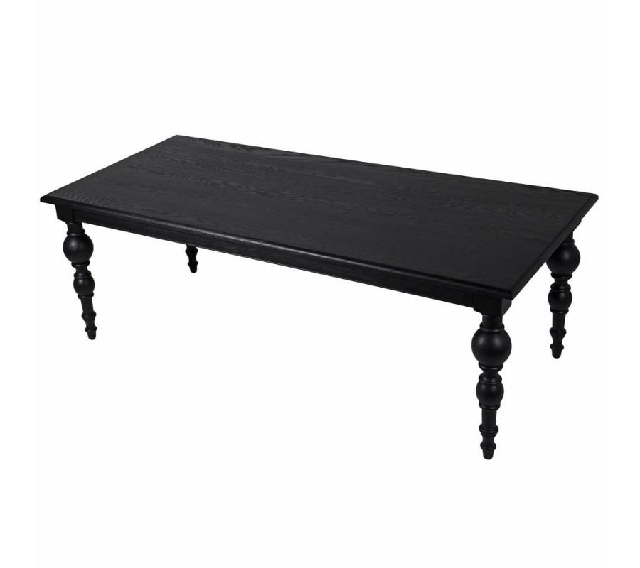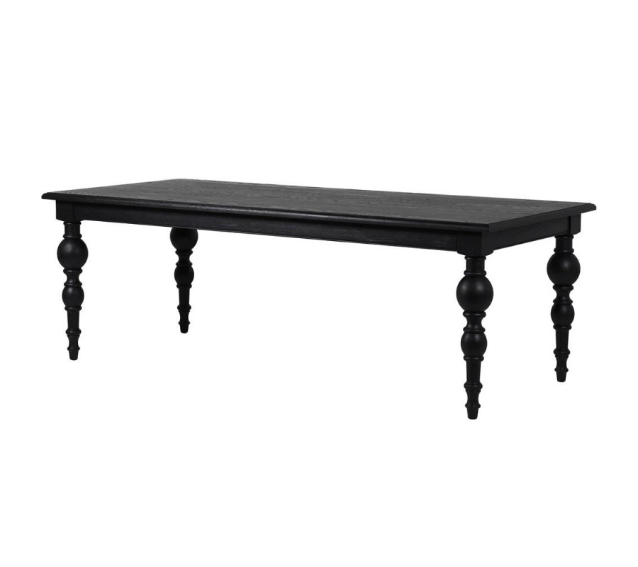 Rustikálny masívny jedálenský stôl Eurydika čiernej farby s vyrezávanými nohami 220cm