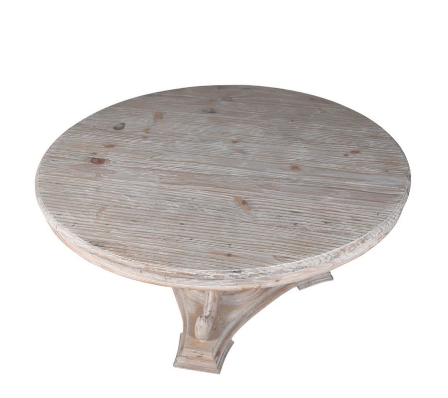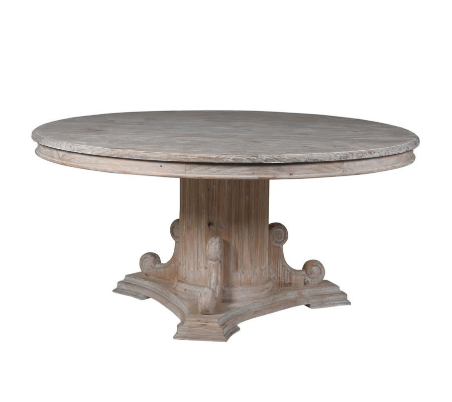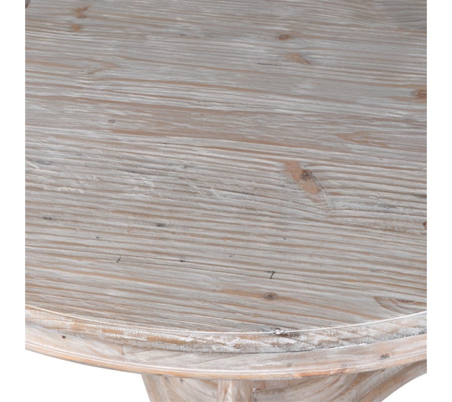 Luxusný okrúhly stôl Toursa sa môže pýšiť krásnou a detailne prepracovanou dominantnou konštrukciou v podobe jednej nohy, ktorá drží vrchnú masívnu dosku s povrchovým vyrezávaním po obvode a úpravou vyzdvihujúcou naturálny vzhľad dreva. Vďaka unikátnemu vzhľadu masívnej nohy pripomínajúcej piedestál je stôl Toursa jedinečným kusom nábytku do rustikálne alebo vidiecky ladených domácností v kombinácií s neutrálne zafarbenými stoličkami a doplnkami prírodného charakteru, v ktorých svetlá off white farba jednoducho vynikne vďaka svojmu bohatému a elegantnému prevedeniu. Priemer jedálenského stola Toursa je 160cm, čo znamená že za stolom sa pohodlne usadí do 8 osôb.