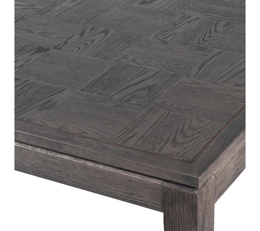 Štýlový jedálenský stôl Emperor je nadčasovým kúskom, ktorý krásne doplní interiér vašej modernej ale i klasickejšie ladenej obývačky, jedálne či kuchyne. Stôl je vyrobený z kvalitného masívneho dubového dreva a zdobí ho povrchová úprava so šachovnicovým vzorom, ktorá necháva vyniknúť jeho prirodzenú kresbu. Nesie sa v dizajnovej sivohnedej farbe, vďaka čomu ho poľahky doladíte aj do farebnejšie ladených priestorov. Jedálenský stôl Emperor vytvorí krásnu kombináciu s čalúnenými stoličkami, ďalšími masívnymi kúskami či farebným dizajnovým koberčekom.
