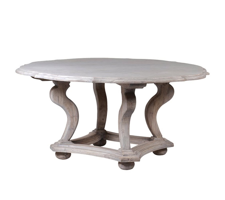 Rustikálny okrúhly jedálenský stôl Imperia z masívneho dreva s vyrezávanými nožičkami 158cm