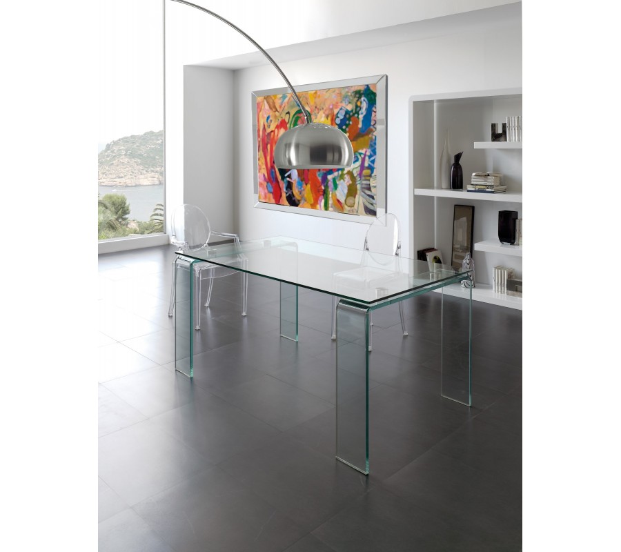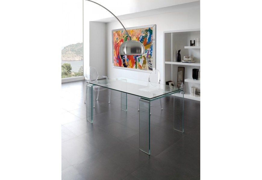 Dizajnový sklenený jedálenský stôl Cristallere v obdĺžnikovom tvare so sklenenými nožičkami 160cm