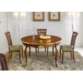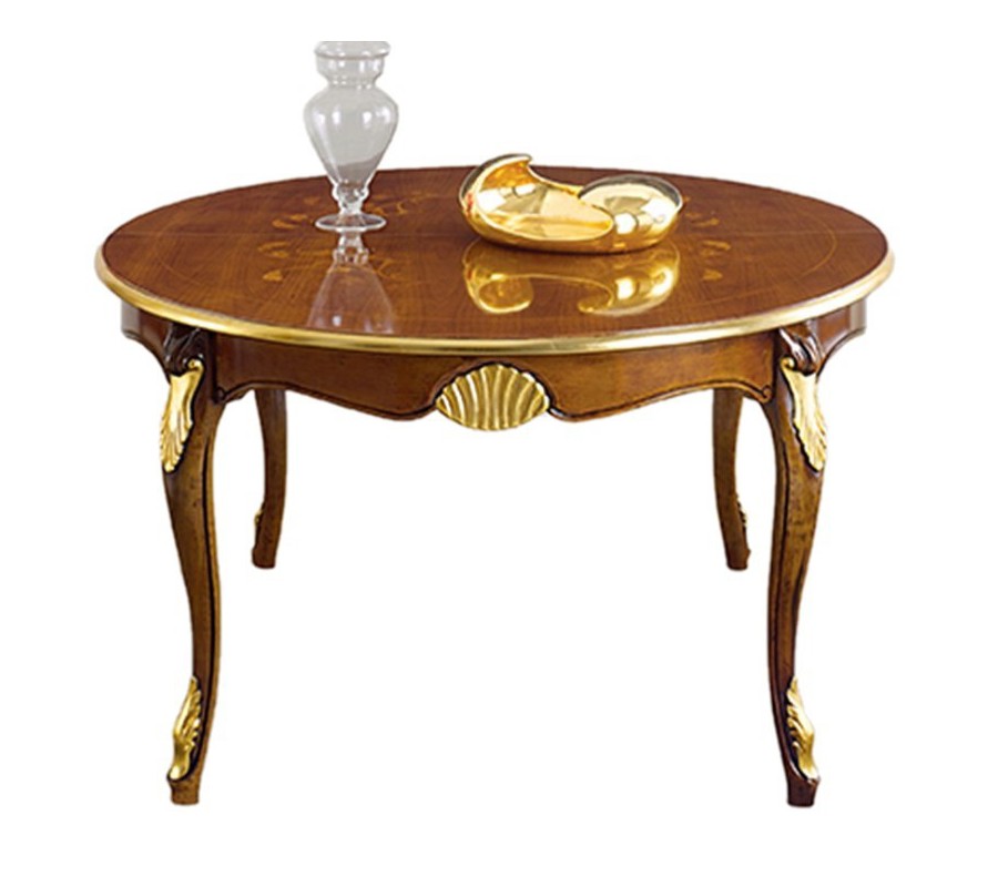 Tento kráľovsky pôsobiaci kúsok z kolekcie klasického Talianskeho nábytku Pasiones vás zaručene očarí svojím jedinečným dizajnovým vyhotovením. Masívne lakované drevo je elegantne a precízne vyrezávané, či už na nožičkách alebo aj na okrúhlej vrchnej doske, čo dopĺňa a vyzdvihuje klasický, historický dizajn. Jedálenský stôl Pasiones je taktiež obohatený o zlaté alebo strieborné kovové ozdoby po nožičkách, a v prípade zlatej variácie stolík disponuje ozdobou pripomínajúcou mušľu v zlatom kovovom vyhotovení. Jedálenský stôl sa môže na prvý pohľad zdať kompaktný, no vďaka svojmu praktickému rozkladaciemu mechanizmu vám jedálenský stôl pasiones ponúkne dostatok priestoru pre pohodlné stolovanie. Klasické vyhotovenie jedálenského stola Pasiones vynikajúco vynikne s nábytkom z tejto kolekcie, alebo s nábytkom v klasickom, až zámockom štýle.