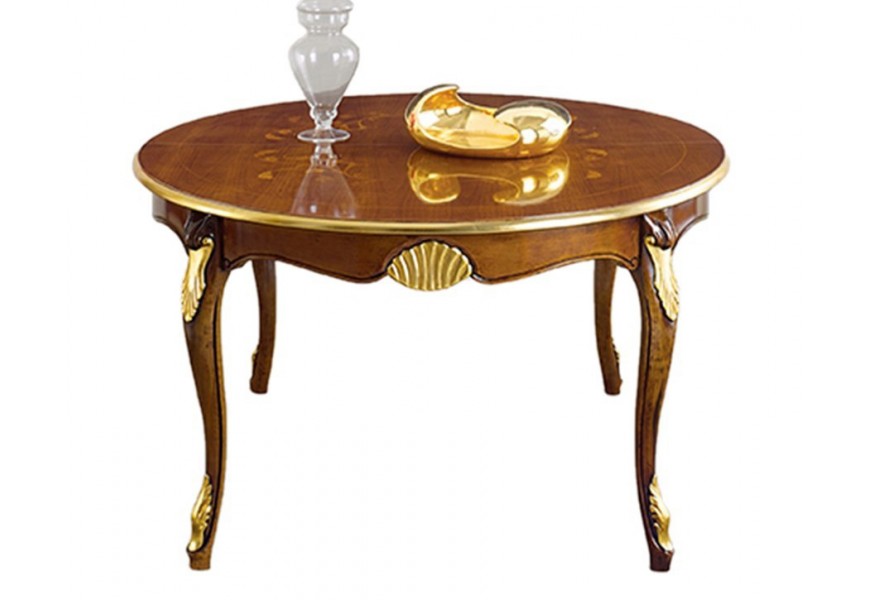 Luxusný okrúhly rozkladací jedálenský stôl Pasiones z lakovaného masívneho dreva so zlatými dekoráciami 140cm