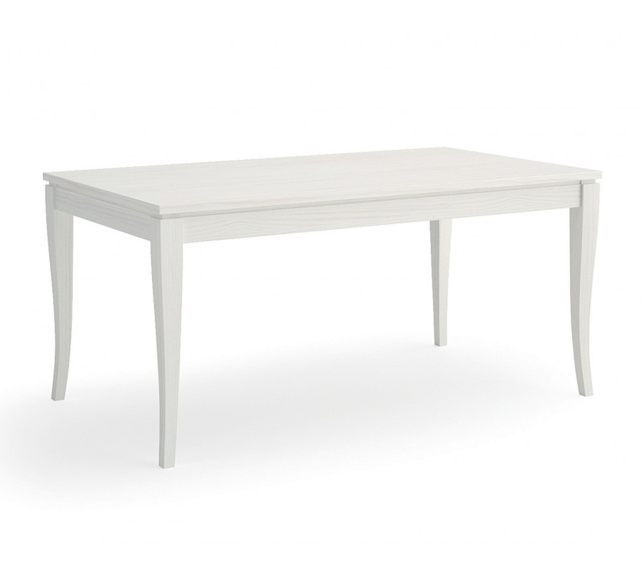 Stôl má obdĺžnikovú vrchnú dosku s dĺžkou 140 cm, ktorá poskytne stolovacie miesto pre štyri až šesť osôb. Je možné ju rozložiť na dĺžku 200 cm, pri čom usadíte šesť až osem osôb. Pod doskou sú po jej obvode upevnené lineárne lišty a vizuálne ich oddeľuje horizontálny zárez, ktorý pôsobí tradičným vidieckym dojmom. Na rohoch sa nachádzajú nohy, inšpirované klasickým štýlom. Ich dvakrát prehnutý kabriolový tvar a zoštíhlené spodné časti elegantné dotvárajú siluetu.