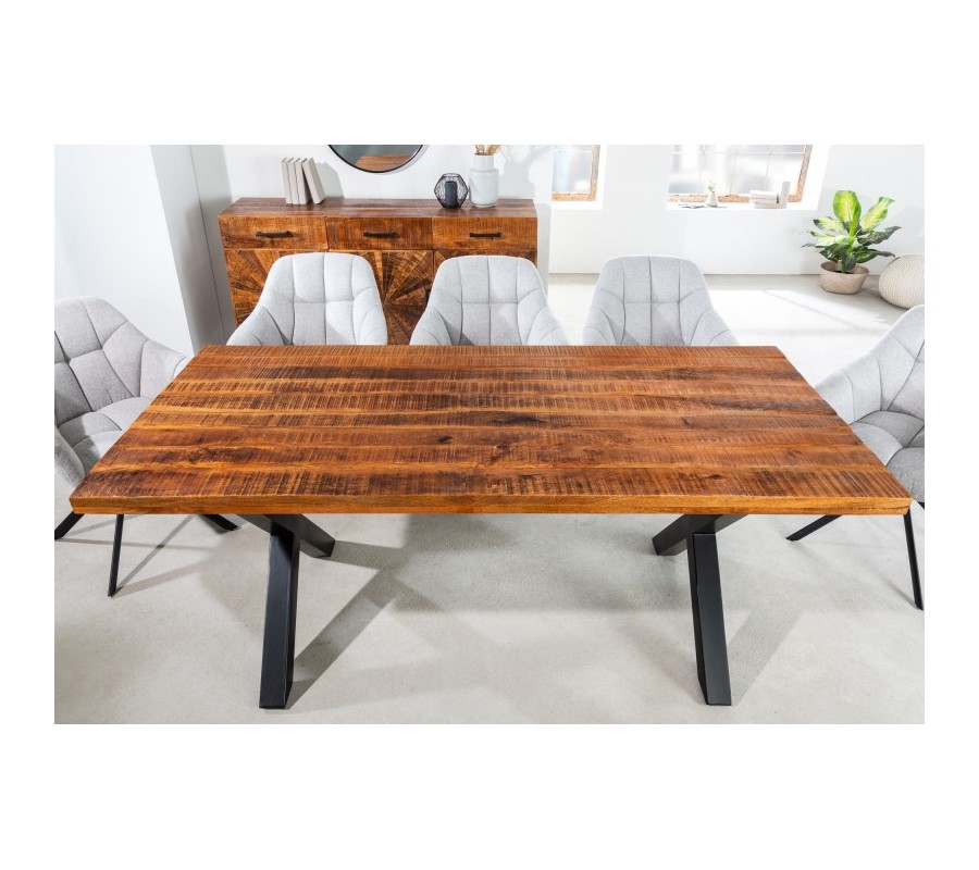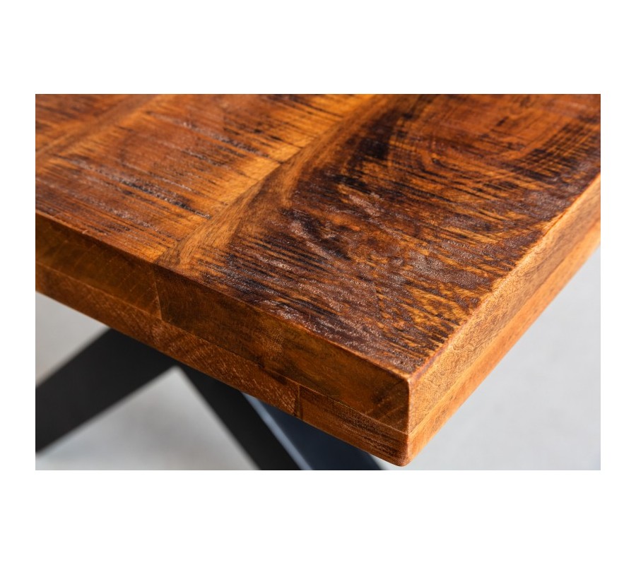 Štýlový jedálenský stôl Fair Haven je nadčasovým kúskom vhodným predovšetkým do moderných jedální, kuchýň či obývačiek. Zaujme svojou mohutnou konštrukciou z kvalitného masívneho mangového dreva, ktorú dopĺňajú čierne kovové nohy prekrížené do tvaru x. Farebná kombinácia prírodnej hnedej a čiernej a kombinácia týchto materiálov vytvára nezameniteľný industriálny nádych, ktorý oživí vaše priestory a dodá im efekt nadčasovosti. Stôl Fair Haven sa výborne kombinovať s masívnymi alebo čalúnenými stoličkami. Odporúčame taktiež doplnky a dekorácie v industriálnom štýle alebo kúsky z prírodných matreriálov. Za stôl sa pohodlne usadí 6-8 ľudí.