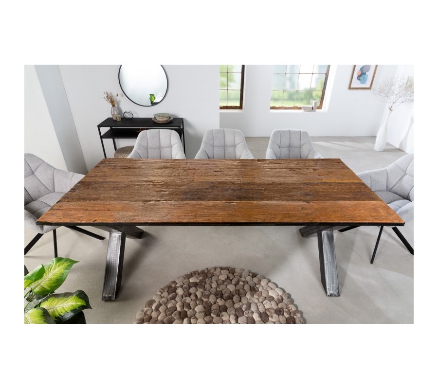 Dizajnový obdĺžnikový jedálenský stôl Barracuda do jedálňe v industriálnom štýle z hnedého masívneho dreva 180cm