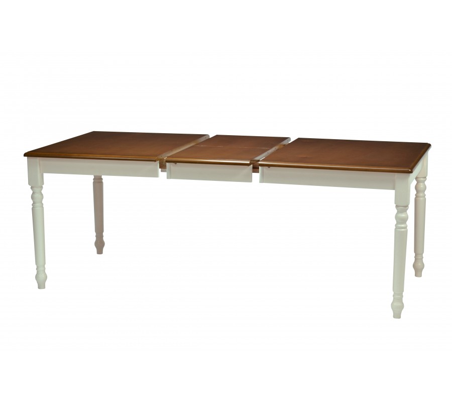Provensálsky rozkladací jedálenský stôl Felicita z dreva hnedo-bielej farby s vyrezávanými nohami 150-194cm