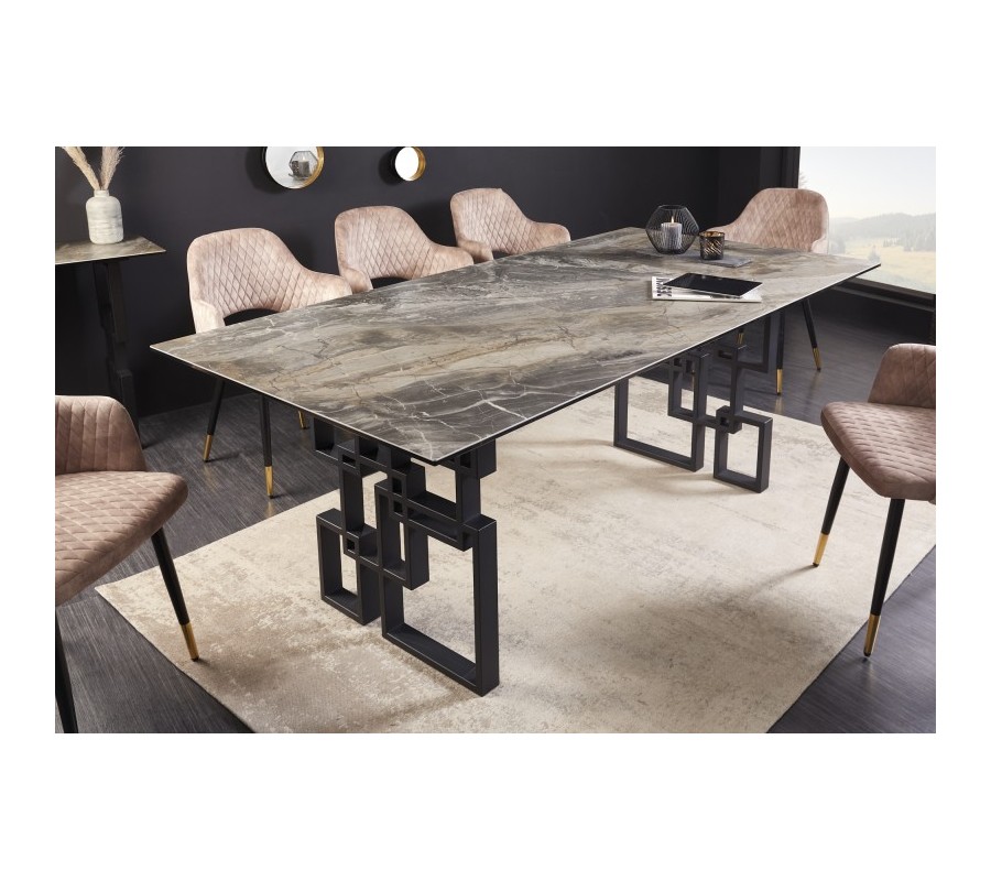 Luxusný art-deco obdĺžnikový jedálenský stôl Ariana v sivej farbe s mramorovým vzhľadom a dizajnovými nožičkami 200cm