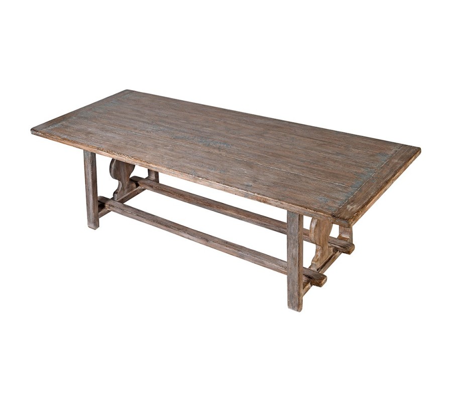 Vidiecky obdĺžnikový jedálenský stôl Merlin v masívnom drevenom vyhotovení s hnedou povrchovou úpravou a ošúchaným efektom 240cm
