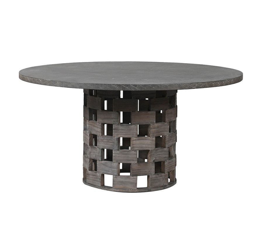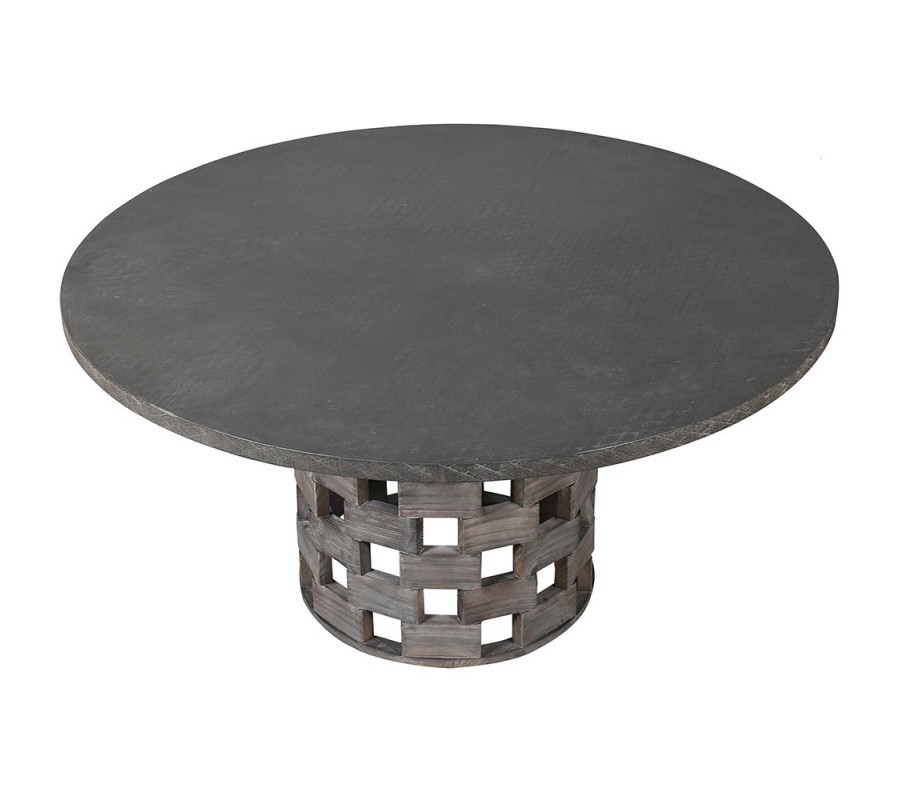 Luxusný okrúhly jedálenský stôl Lattice so sivou betónovou vrchnou doskou s masívnou tmavosivou podstavou 76cm