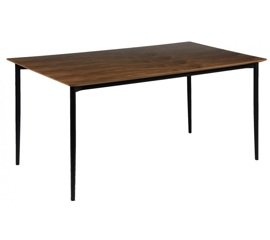 Moderný hnedý jedálenský stôl Vidar v škandinávskom štýle s naturálnym vzhľadom a čiernymi kovovými nožičkami 160cm