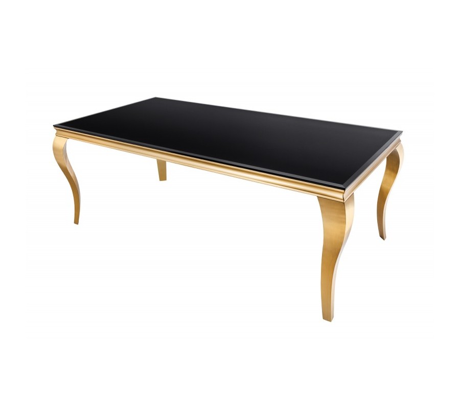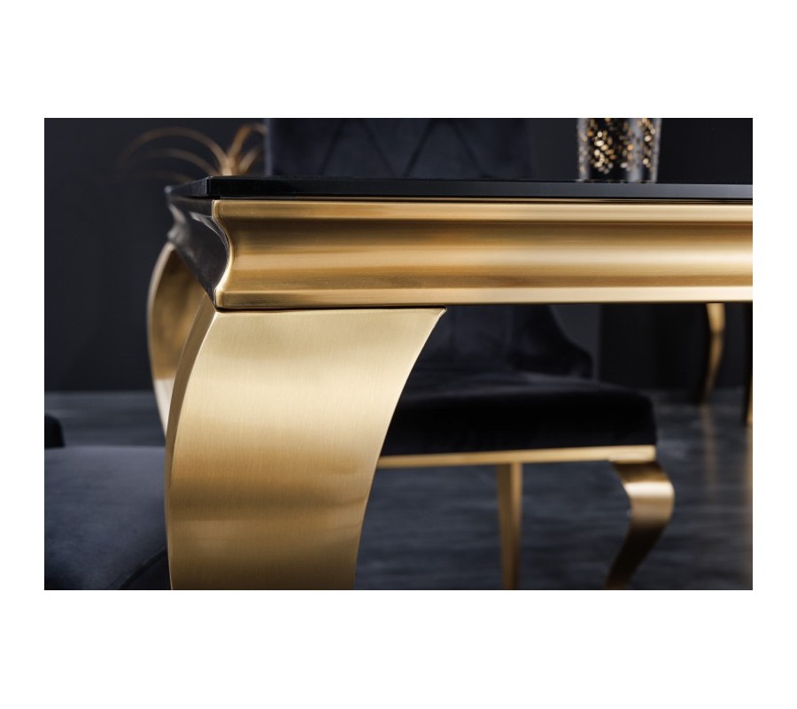 Moderný jedálenský stôl Gold Barock v barokovom štýle zlatá konštrukcia a čierne opálové sklo 180cm
