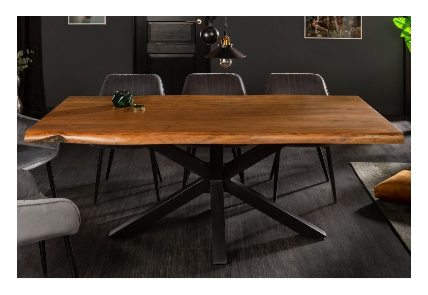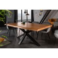 Industriálny masívny jedálenský stôl Mammut z akáciového dreva hnedej farby s čiernymi kovovými nohami 180cm