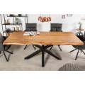 Industriálny masívny jedálenský stôl Mammut z akáciového dreva hnedej farby a s čiernymi kovovými nohami 220cm