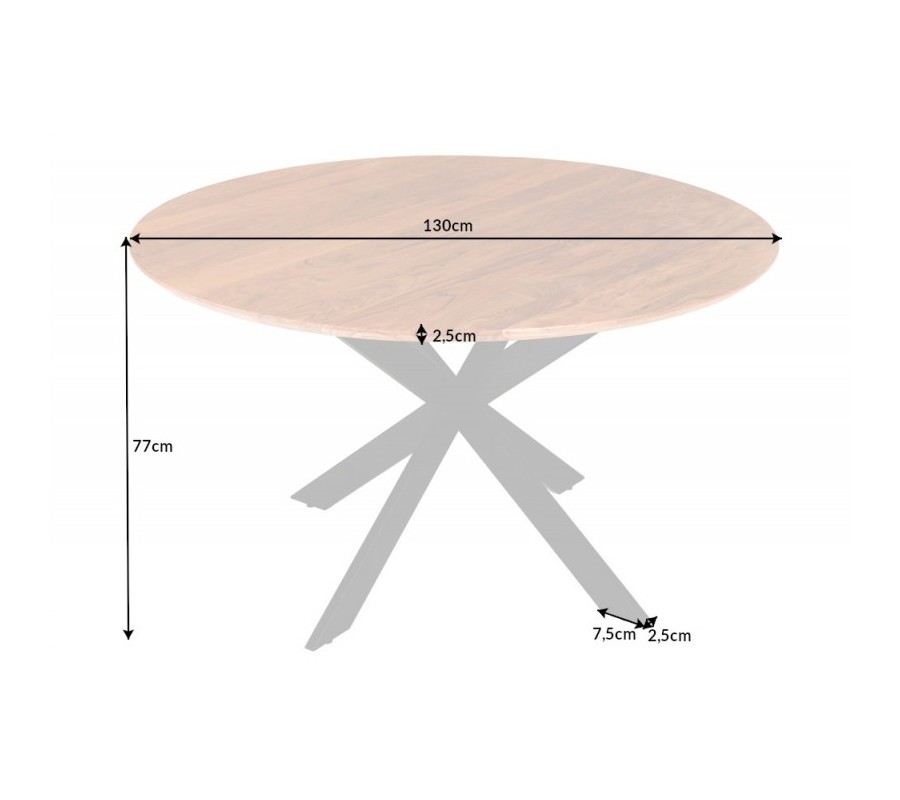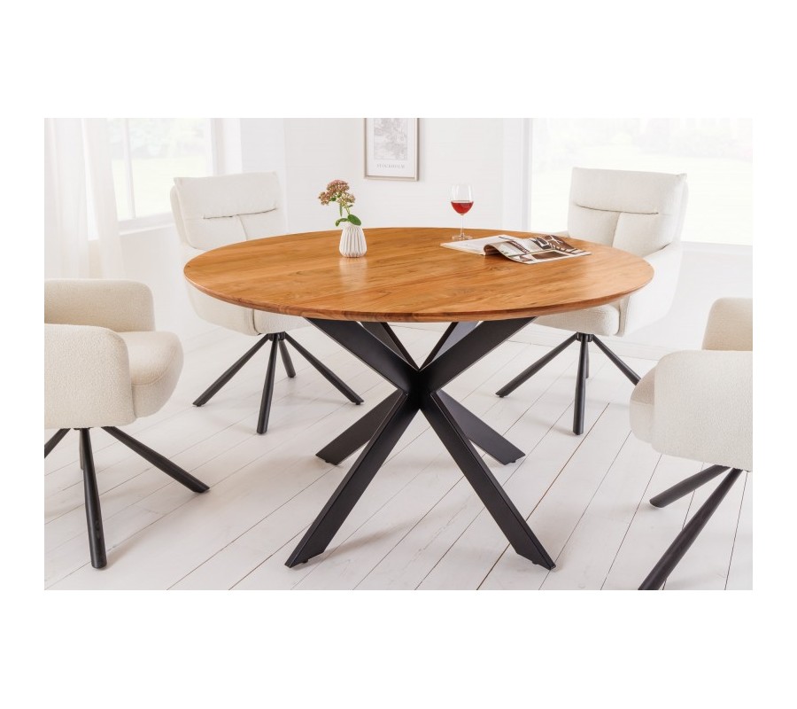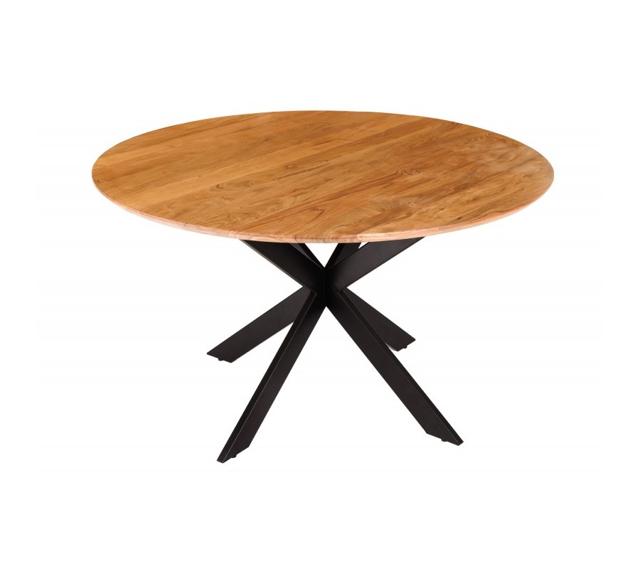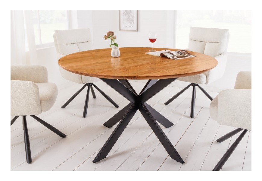 Industriálny jedálenský stôl Comedor okrúhleho tvaru z masívneho akáciového dreva s kovovými nohami 130cm