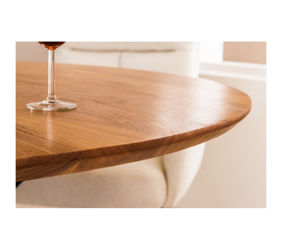 Jedinečná kombinácia prírodného akáciového masívu a mohutných kovových nôh sú charakteristickými prvkami jedálenského stola Comedor. Tento nadčasový kúsok vo svojom dizajne prepája jemný industriálny nádych s modernými prvkami a naturálnym, vzhľadom, vďaka čomu je ideálnym na doplnenie moderne a nadčasovo ladených interiérov. Okrúhlu povrchovú dosku v príjemnej teplej hnedej farbe dopĺňa industriálne ladená podstava v podobe čiernych kovových nôh hviezdicovitého tvaru. Prirodzená kresba dreva na doske do vašich priestoroch vnesie prírodný nádych a dopomôže k vytvoreniu skutočne útulnej atmosféry domova. Jedálenský stôl Comedor vynikne v svetlých i tmavších jedálňach, obývačkách i kuchyniach a dá sa ľahko kombinovať so širokou škálou farieb. Skvelo ho doplnia pohodlné čalúnené jedálenské stoličky s kovovými či drevenými nožičkami a ďalší masívny nábytok. Vhodné sú tiež doplnky v prírodných farbách či dizajnové kovové dekorácie v industriálnom štýle. Za stôl sa pohodlne usadí 4-6 ľudí.
