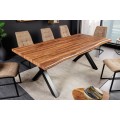 Industriálny jedálenský stôl Bergo s vrchnou doskou v orechovej hnedej farbe na čiernych kovových nohách 200cm