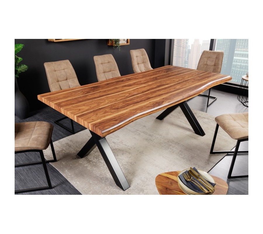 Miminalistické a kvalitné prevedenie jedálenského stola Bergo poteší nejedného milovníka industriálneho sofistikovaného štýlu. Jedálenský stôl v obdĺžnikovom tvare prichádza na mohutných čiernych kovových nohách s prekrížením, ktoré podčiarkuje vrchná masívna doska potiahnutá fóliou vo farebnom prevedení orech. Pevná konštrukcia je vyhotovená stabilne a disponuje štedrými rozmermi, a tak za stôl usadíte pohodlne 8-10 osôb. Do vašej industriálne ladenej jedálne sa bude skvelo hodiť a vytvorí pre vás ideálny priestor a atmosféru na vychutnanie si jedla s vašimi najbližšími. Farebné vyhotovenie vám necháva priestor na akúkoľvek farebnú kombináciu, ktorá vám padne do oka-do vášho interiéru môžete ku stolu Bergo kombinovať či už prírodné alebo aj sýtejšie výrazné odtiene burgundy, smaragdovej či tmavomodrej.