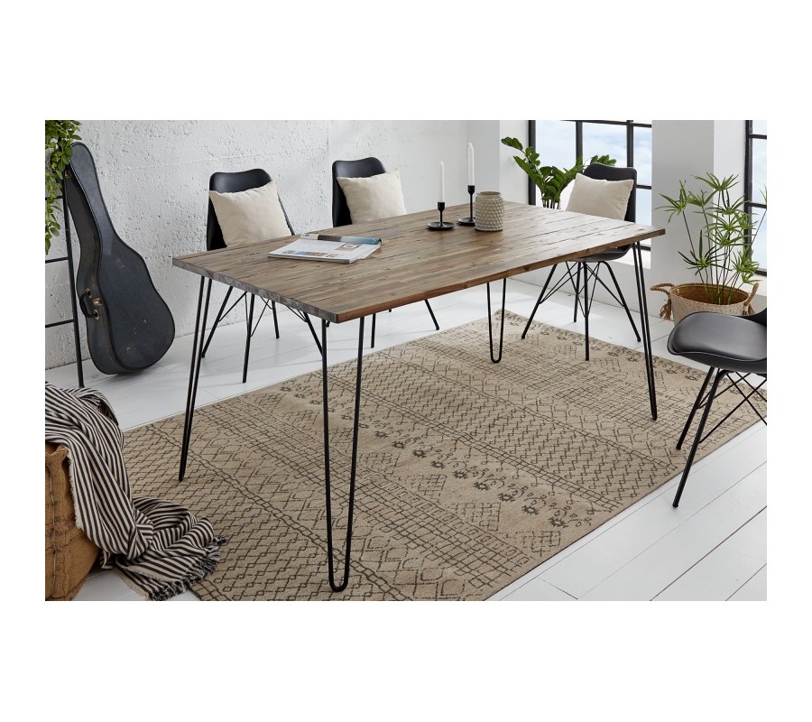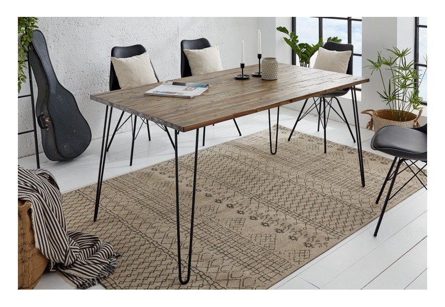 Industriálny jedálenský stôl Leeds z agátového masívu hnedej farby s čiernymi kovovými nohami 180cm