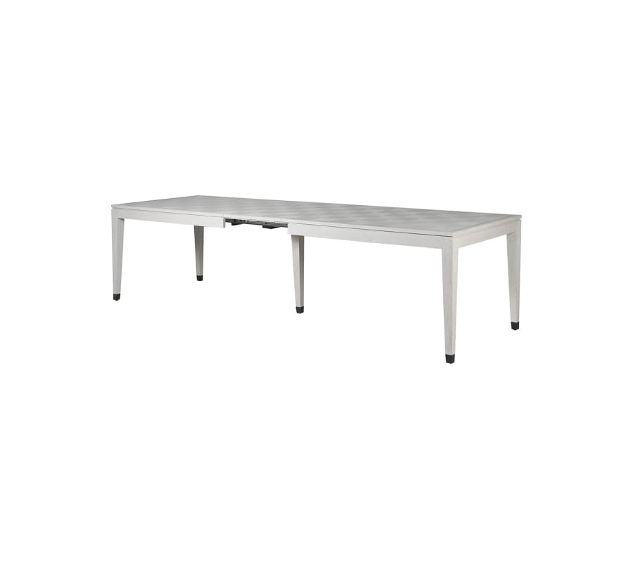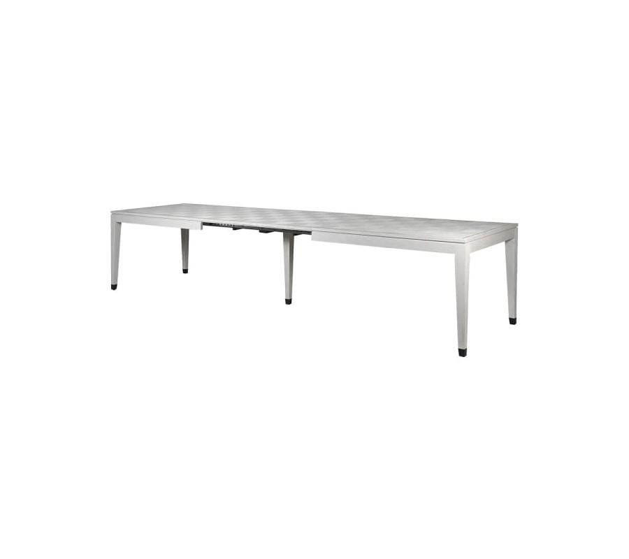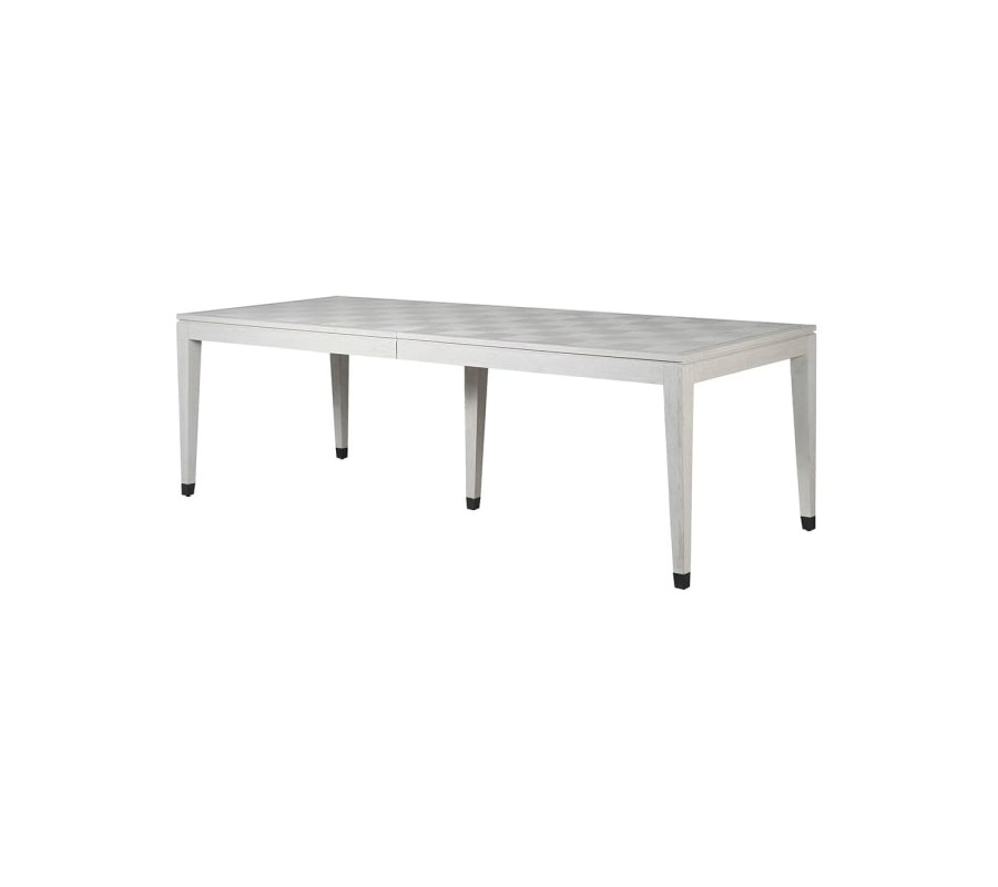 Moderný rozkladací jedálenský stôl Quadria Blanca bielej farby z masívneho dreva s šachovnicovým vzorom 240-356cm