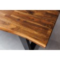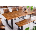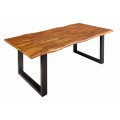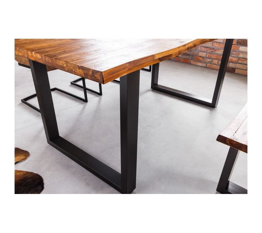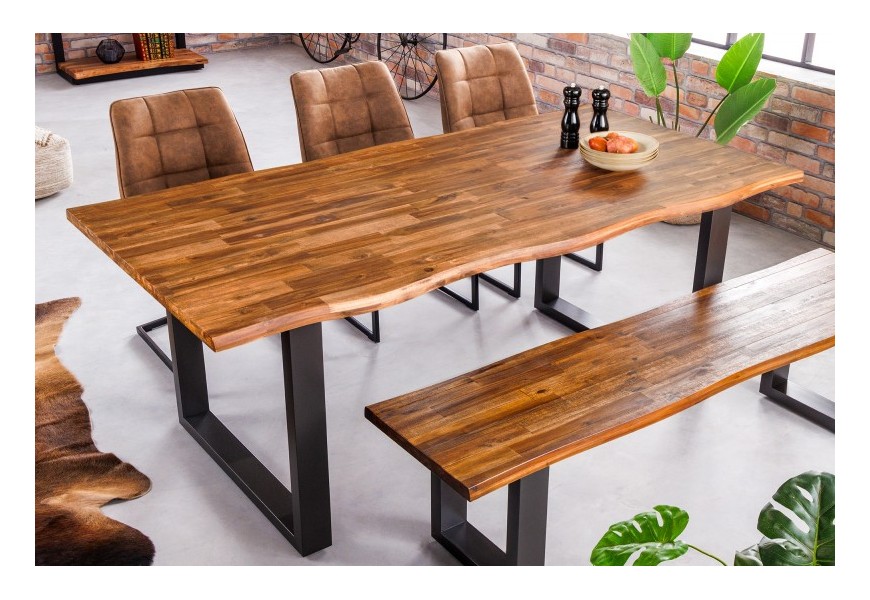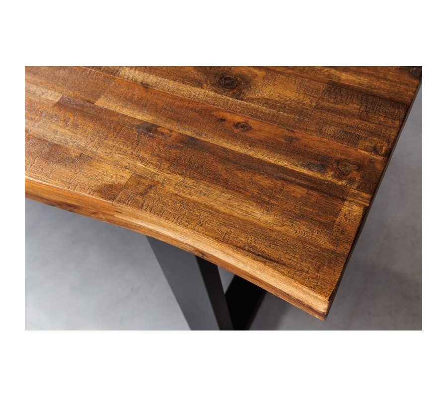 Masívny jedálenský stôl Marron Miel v prírodnom akáciovom vyhotovení s čiernymi kovovými nožičkami obdĺžnikový hnedý 200cm