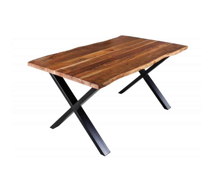 Masívny jedálenský stôl Mammut z akáciového dreva hnedej farby a s čiernymi prekríženými nohami 160cm