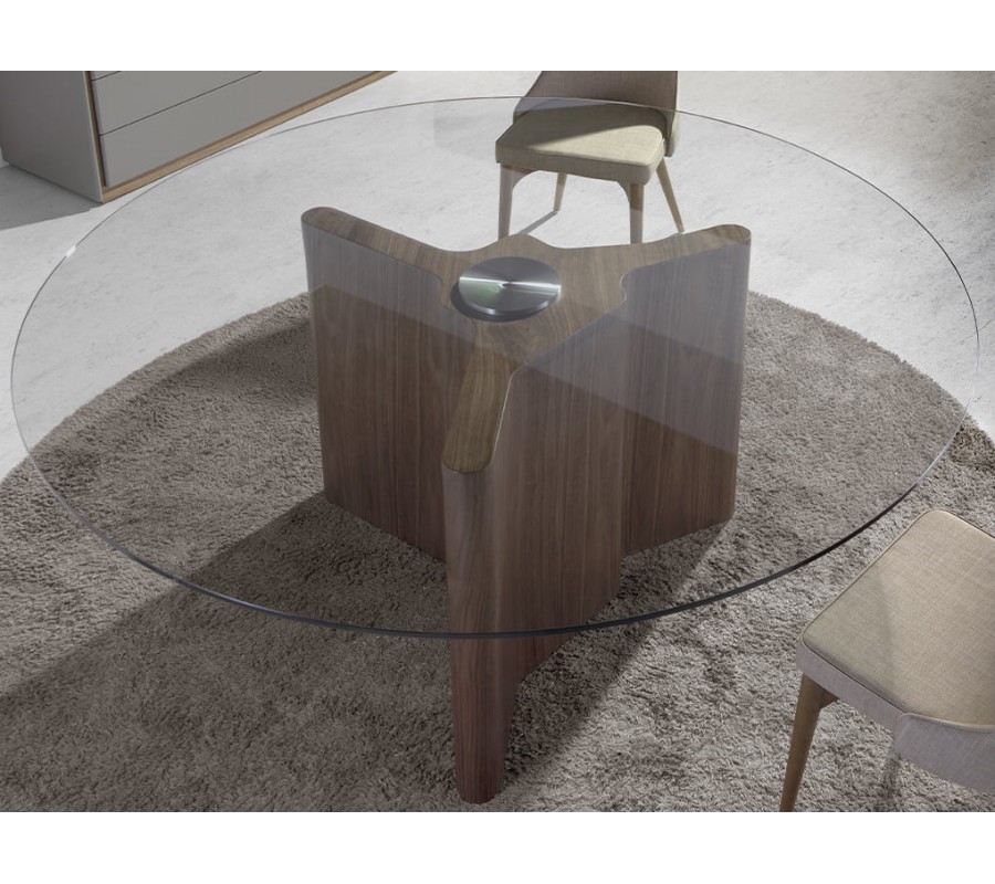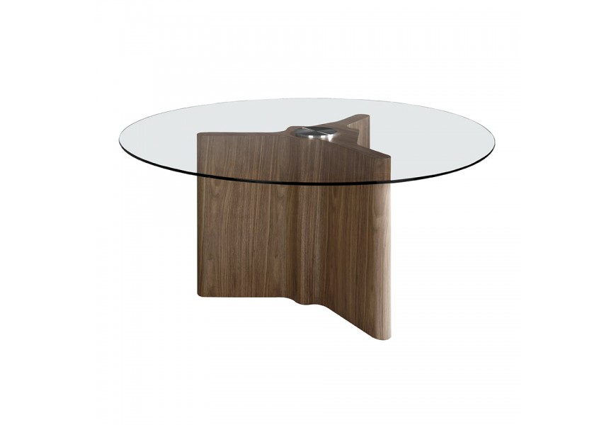 Moderný okrúhly jedálenský stôl Vita Naturale z dreva a skla 180cm