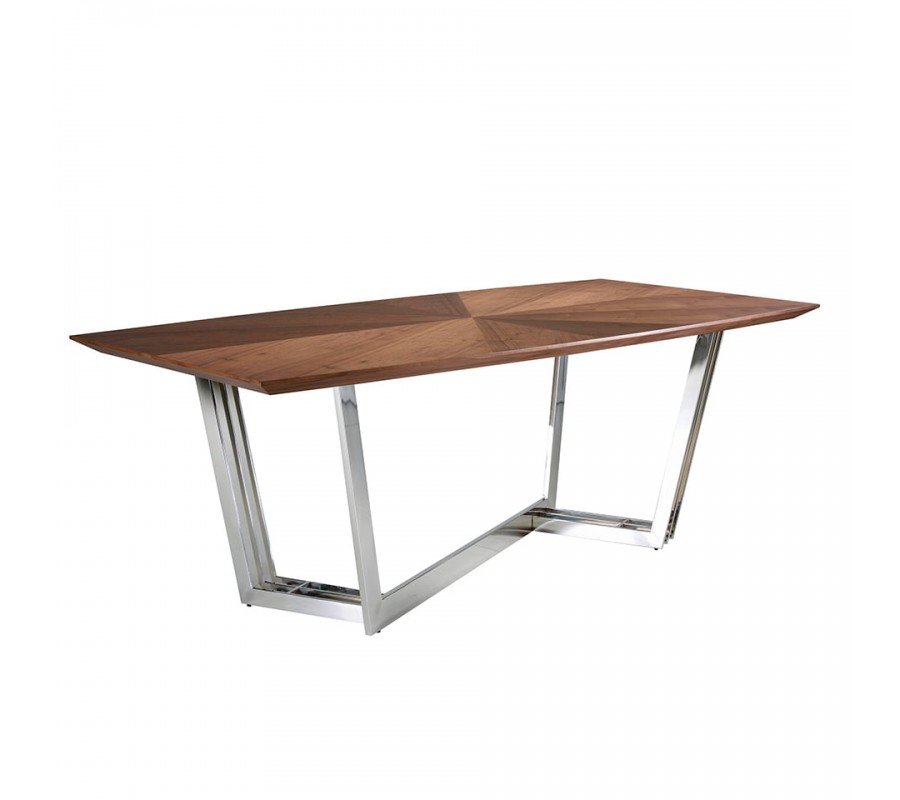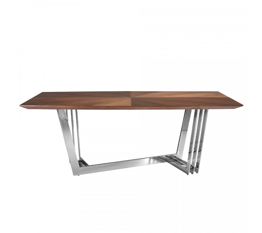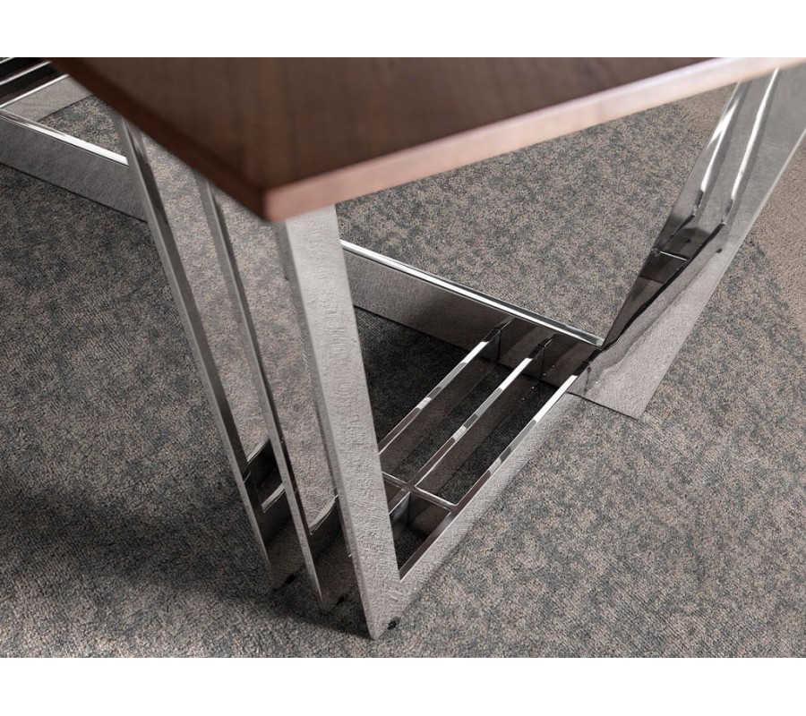 Prírodné drevené prevedenie jedálenského stola Vita Naturale doplní elegancia a inteligentné vyhotovenie trojitých chrómovaných nožičiek z nehrdzavejúcej ocele, čím stôl prináša do Vášho interiéru prvok modernosti a nadčasového avantgardného štýlu.