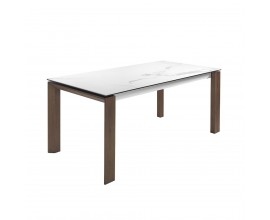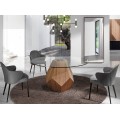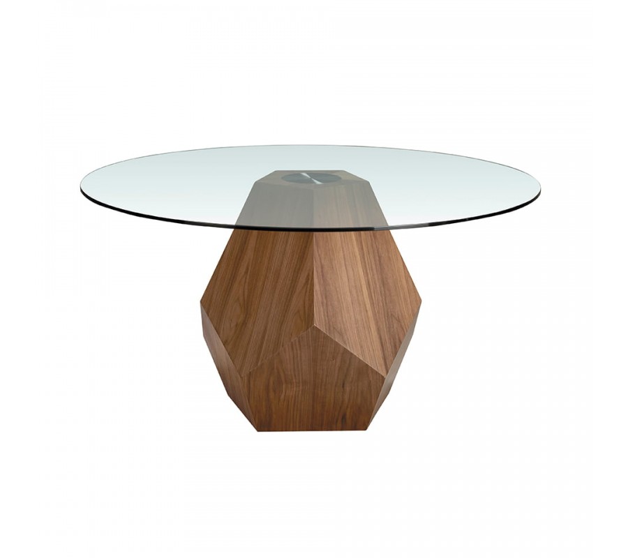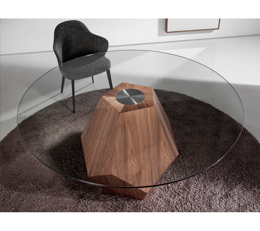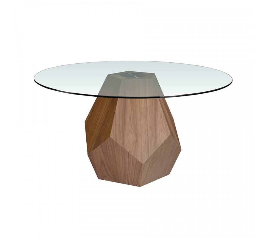 Kvalitná doska stola je zasadená do sofistikovanej podstavy z borovicového masívu, ktorý je doplnený dyhou z orechového dreva v hnedej farbe. Najzaujímavejším prvkom stola je inteligentné prevedenie viachrannej podstavy, ktoré sa hrá s uhlami a geometrickými tvarmi, čím podčiarkne jeho sofistikovaný vzhľad a avantgardný charakter vďaka kombinácií so vzdušným dizajnom sklenenej vrchnej dosky. Drevené vyhotovenie v hnedej farbe v neposlednom rade prinesie pocit útulnosti a pocit tepla do Vašej jedálne, čím umocní jej prírodný vzhľad a príjemný nádych.