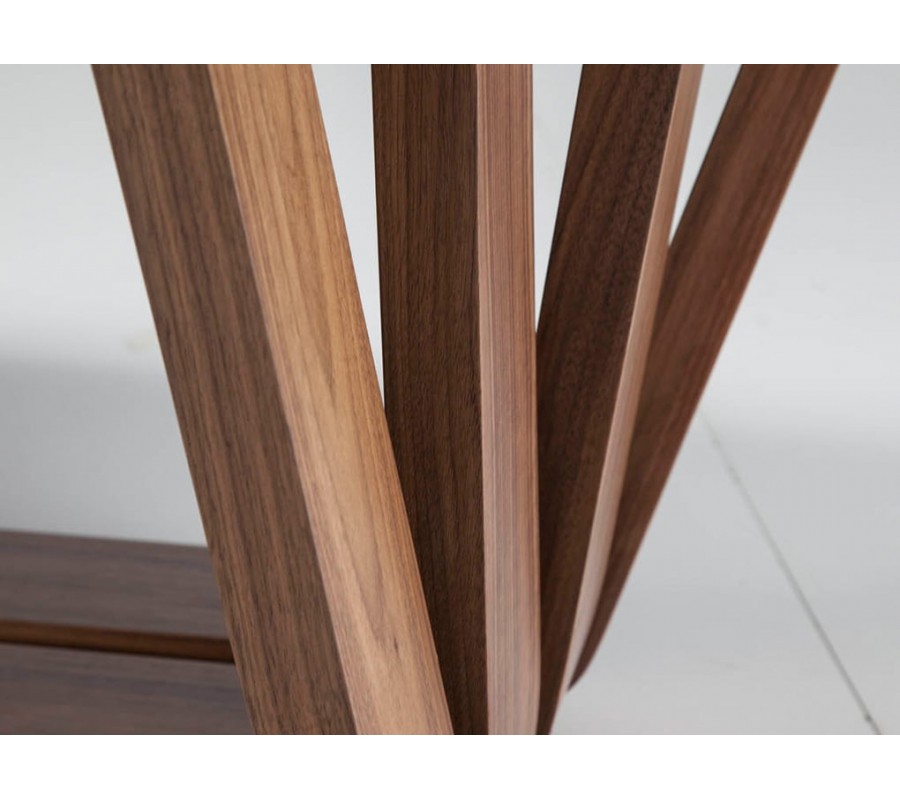 Umocnite zážitok zo stolovania s obdĺžnikovým jedálenským stolom z kolekcie Vita naturale. Moderný jedálenský stôl Vita Naturale ponúka jedinečný taliansky dizajn, ktorý je dosiahnutý obdĺžnikovou vrchnou doskou a podstavou, vyrobenou z orechového dyhovaného dreva v hnedej farbe. Dizajnovej stránke dominuje podstava v tvare písmena „U“ ktorá disponuje unikátnym tvarovaným nožičiek, ktoré sa priam hrá s geometrickými líniami. Sofistikovaný dizajn jedálenského stola Vita Naturale je v neposlednom rade doplnený oceľovou podnožou lakovanou čiernou epoxidovou farbou, ktorá dodá štýlový kontrast farieb.