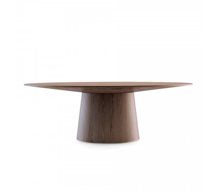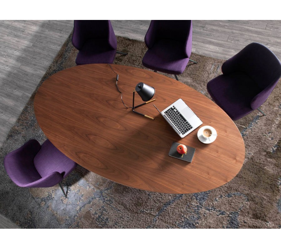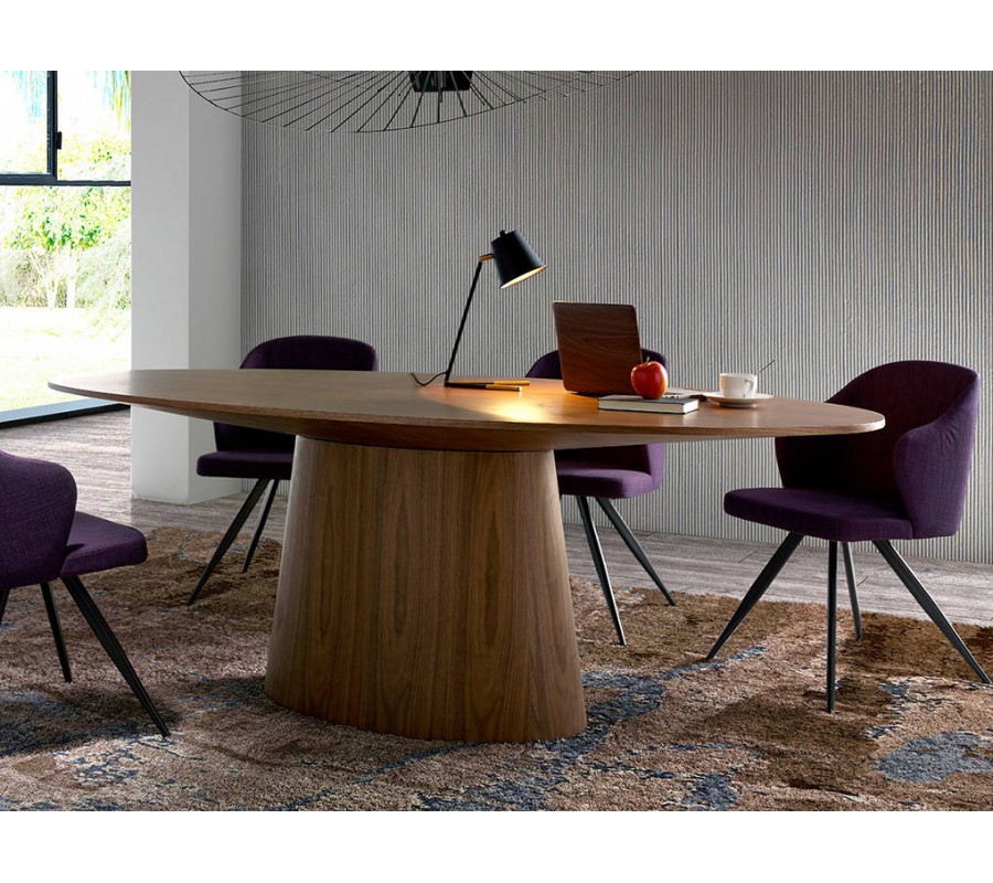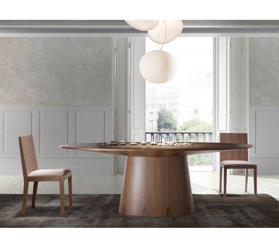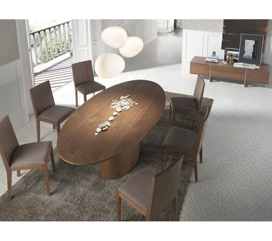 Zažite stelesnenie talianskeho dizajnu s naším jedálenským stolom z kolekcie moderného nábytku Vita Naturale. Tento luxusný kúsok vyrobený dreva, obohateného o kvalitnú orechovú dyhu v hnedej farbe vyžaruje moderný štýl s prírodným nádychom, ktorý kladie dôraz na naturálny vzhľad a kresbu dreveného povrchu. Oválna vrchná doska je zaistená na pevnej podnoži, ktorá svojím nadčasovým dizajnom tvorí inovatívny nádych v modernom štýle.