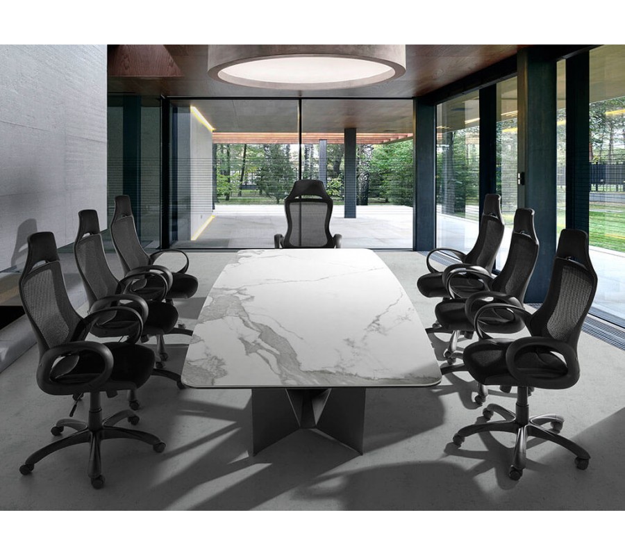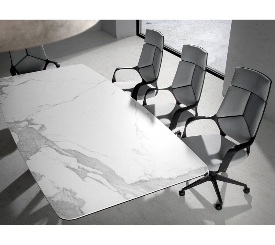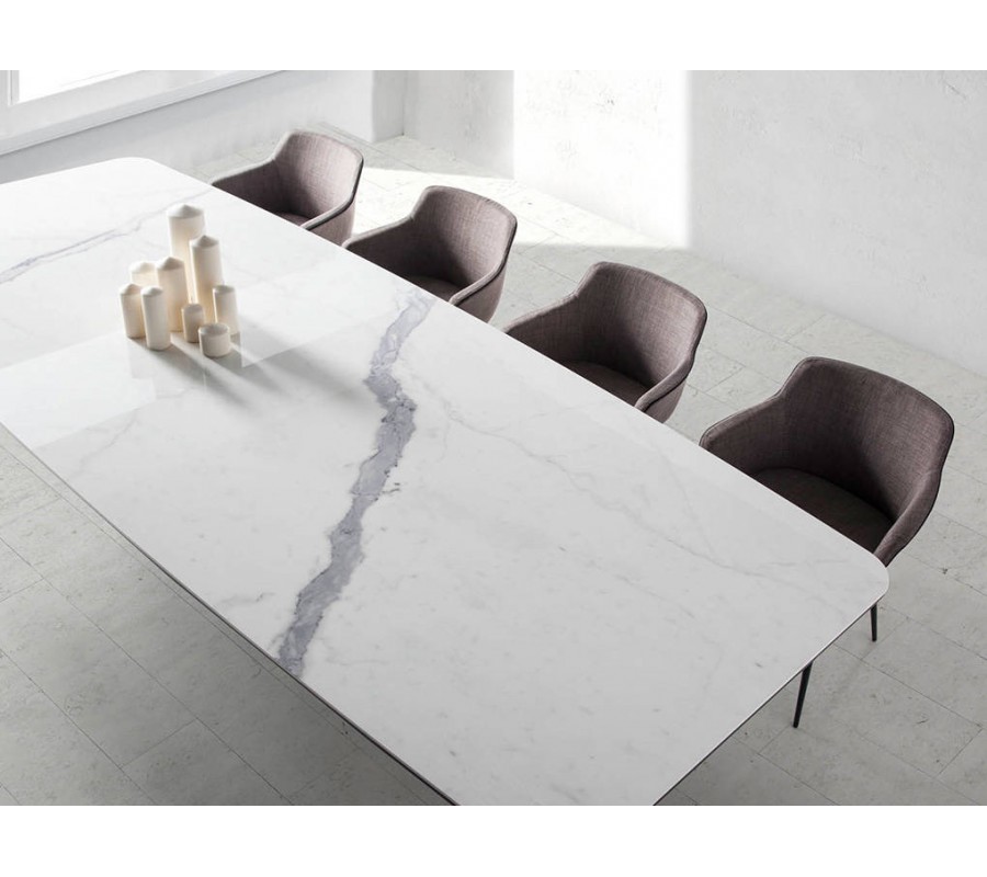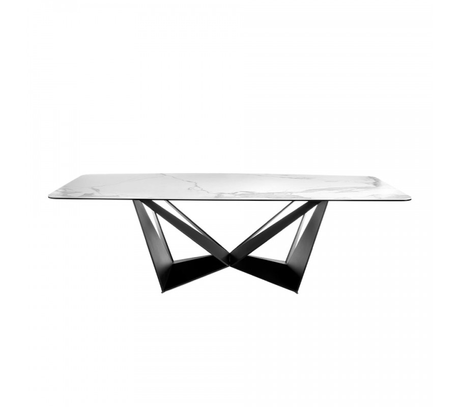 Luxusný jedálenský stôl Urbano je ideálny kúsok pre ľudí, ktorí milujú taliansky štýl nábytku. Moderný dizajn obdĺžnikového jedálenského stola Urbano je dosiahnutý vďaka jeho pevnej vrchnej doske z porcelánu, ktorému dominuje jeho krásny mramorový dizajn. Porcelánová doska je taktiež zasadená na doske z čierneho skla s hrúbkou 8mm.