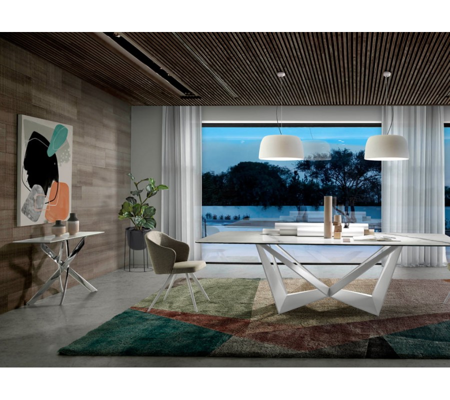 Moderný a nadčasový taliansky dizajn jedálenského stola Urbano je v neposlednom rade dosiahnutý originálnym prevedením oceľovej podnože. Dizajn ponúka jedinečné prevedenie geometrických tvarov a línií podstavy, čo vytvorí sofistikovaný, avantgardný dizajn, a zároveň sa podstava stane kľúčovým prvkom interiérového dizajnu.