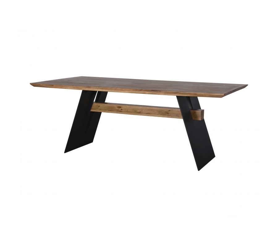 Masívny jedálenský stôl Soterro z prírodného dubového dreva v hnedej farbe na mohutných čiernych nohách 200cm