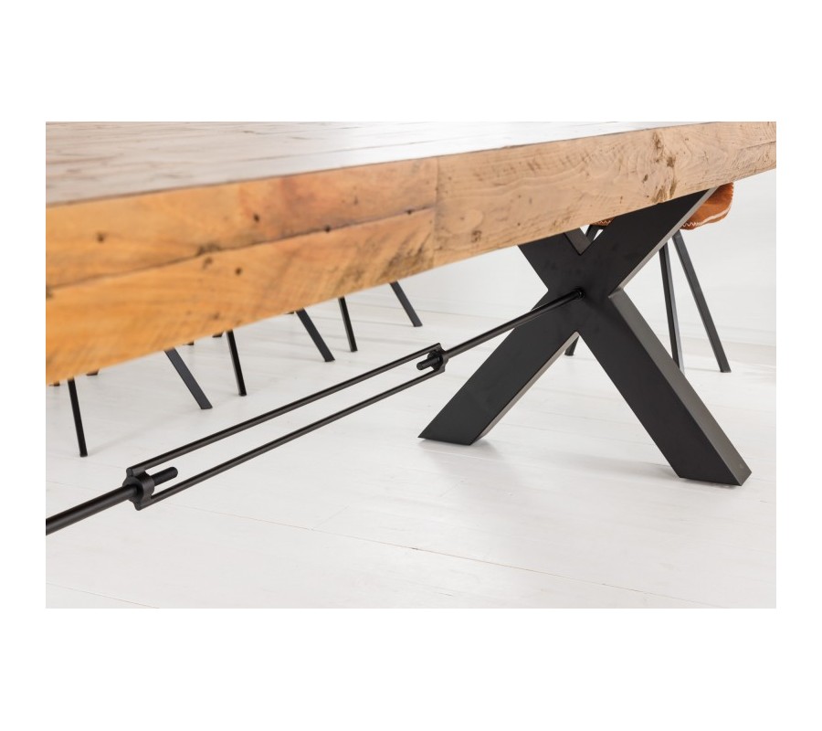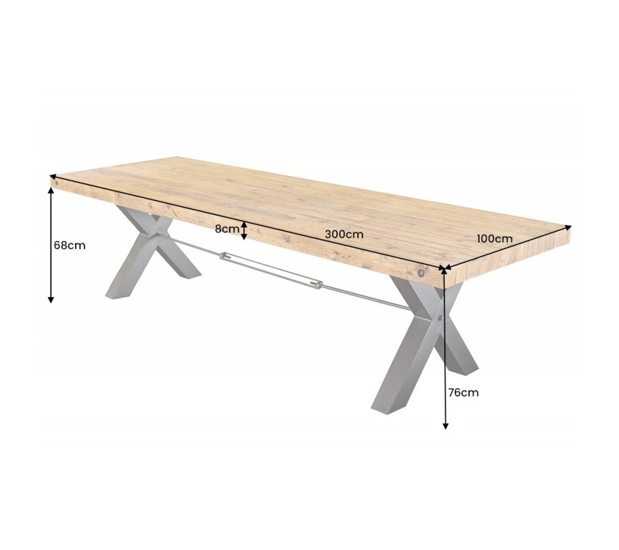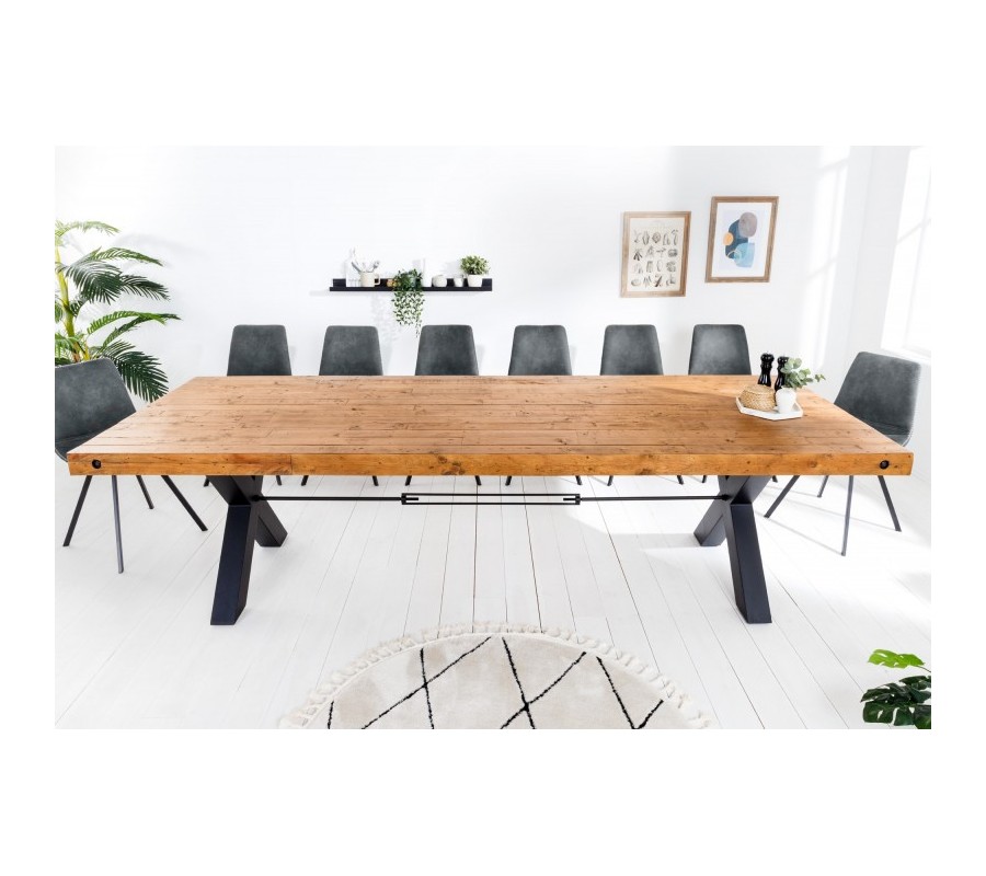 Industriálny jedálenský stôl Freya z masívneho dreva s čiernymi prekríženými nohami z kovu 300cm