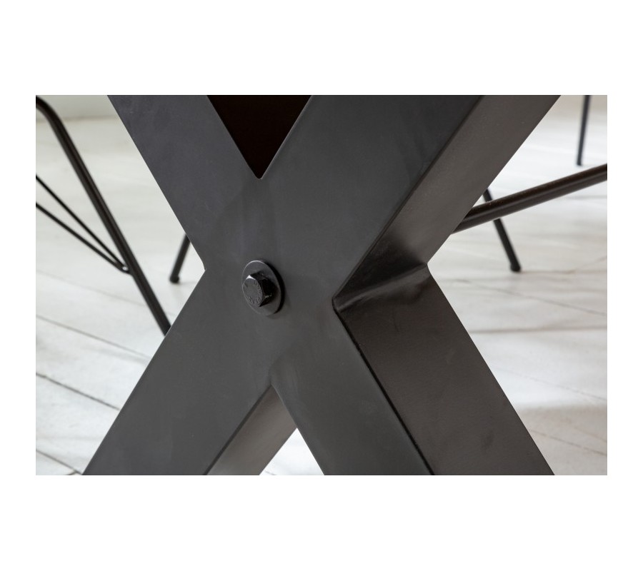 Štýlový jedálenský stôl Freya vás očarí svojím naturálnym vzhľadom s industriálnymi prvkami. Masívne drevo v kombinácii s kovovými nohami vytvára jedinečný industriálny dizajn, ktorý nádherne vynikne v každej nadčasovej jedálni, obývačke či kuchyni a bude pôsobiť dominantným dojmom. Vrchná doska tvorená z jednotlivých trámov dreva sa nesie v prírodnej hnedej farbe a na jej povrchu môžete obdivovať krásnu prírodnú kresbu dreva. Povrch je upravený lakovaním a zámerné nerovnosti robia každý kúsok originálnym a umocňujú industriálny vzhľad. Dominantným prvkom dizajnu sú tiež čierne prekrížené nohy z kovu, ktoré upútajú svojím mohutným vzhľadom. Farebná kombinácia prírodnej hnedej a univerzálnej čiernej vám umožní ľahké doladenie rôznymi doplnkami, textíliami v prírodných aj výraznejších, kontrastnejších farbách a stoličkami s koženým i textilným čalúnením. Jedálenský stôl Freya ideálne vynikne v industriálne ladených priestoroch, kde ho odporúčame doladiť doplnkami z kovu a prírodných materiálov. Stôl je vhodný pre pohodlné stolovanie 8-10 ľudí.