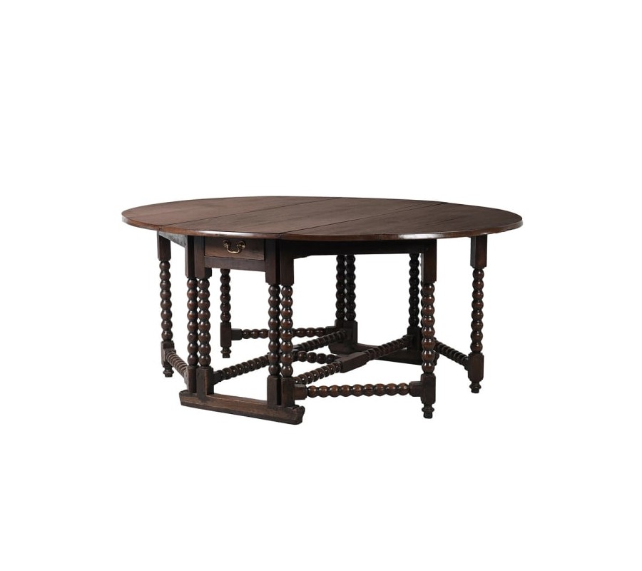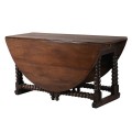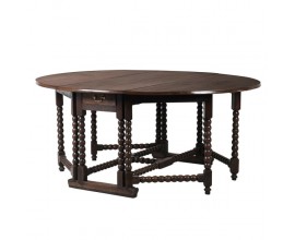 Zaujímavý dizajn jedálenského stola Azrael vkuzsne doplní priestory zariadené v klasickom, rustikálnom či koloniálnom štýle. Jeho vintage vzhľad je dosiahnutý využitím tmavohnedého masívneho dreva s viditeľnou kresbou a preícznym ručným vyrezávaním. Zaujme taktiež vďaka svojej okrúhlej vrchnej doske, ktorá sa dá v prípade potreby sklopiť z dvoch strán. Je tak výborný na uskladnenie aj manipuláciu! Dominantu jeho dizajnu tvoria precízne zdobené nožičky a podstava tvorené guľovitými tvarmi. Praktickým elementom je tiež menšia zásuvka, ktorá poslúži na uschovanie drobností potrebných k stolovaniu. Jedálenský stôl Azrael vkusne doplníte tmavými masívnymi jedálenskými stoličkami či ďalším masívnym nábytkom, ako je napríklad rustikálny príborník alebo kredenc. Stôl je ideálny na pohodlné stolovanie 6-8 ľudí.