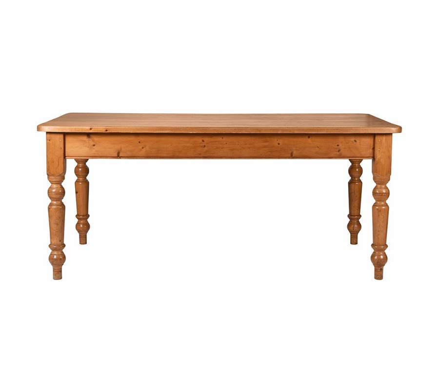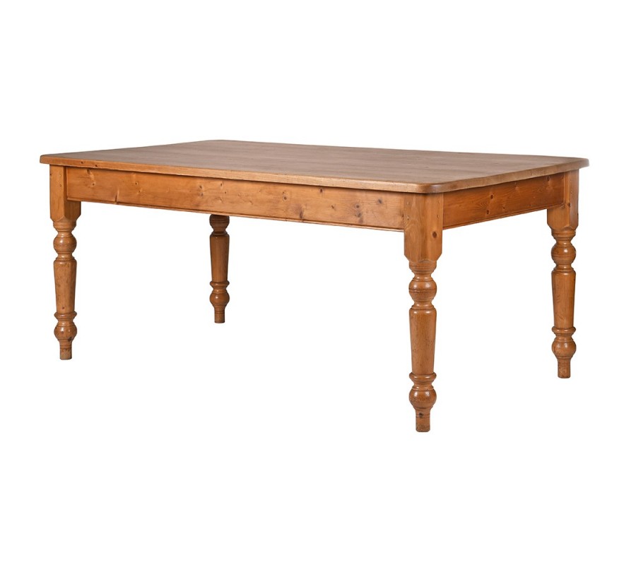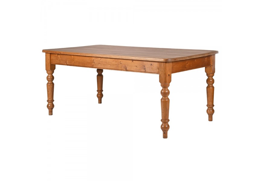 Masívny vidiecky jedálenský stôl Freggo z borovicového dreva s vyrezávanými nohami v svetlohnedom prevedení 180cm