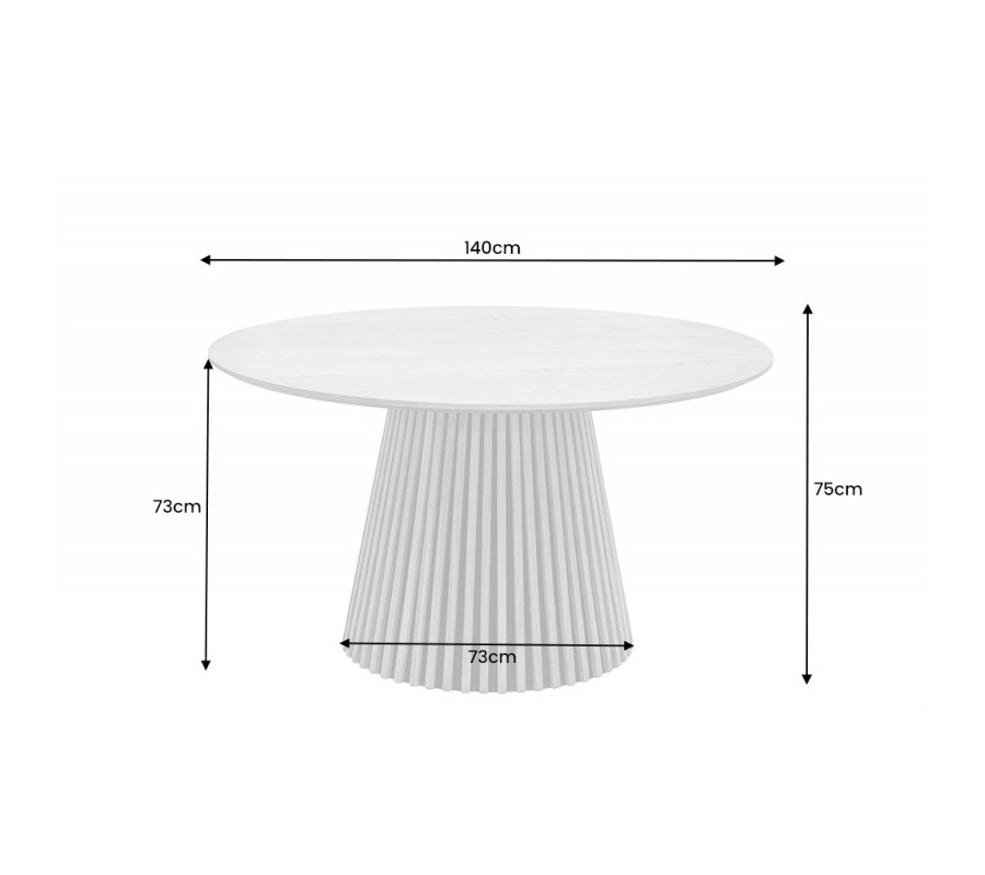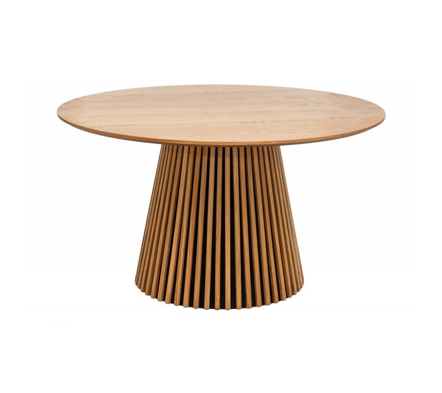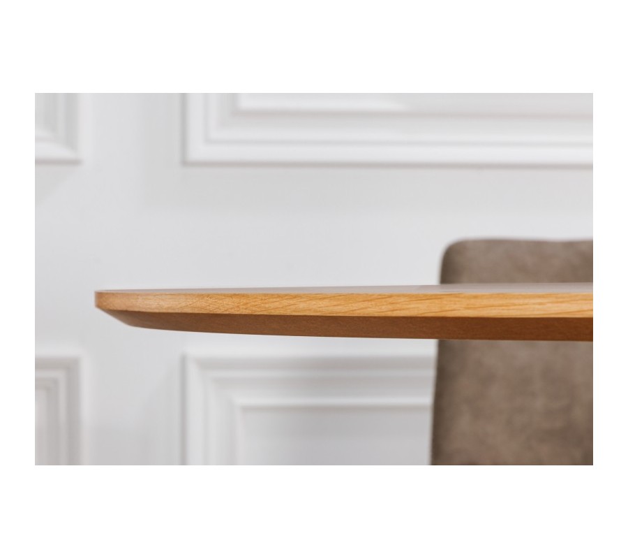 25mm hrubá, praktická okrúhla vrchná doska jedálenského stola Davidson zaručí pohodlné sedenie až 8 ľudom vďaka svojmu priemeru 140cm. Doska je vyrobená z dreva, ktoré je doplnené kvalitným dubovým dyhovaním vo svetlohnedej farbe.