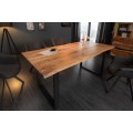 Industriálny masívny jedálenský stôl Mammut z hnedého akáciového dreva na čiernych kovových nohách 160cm