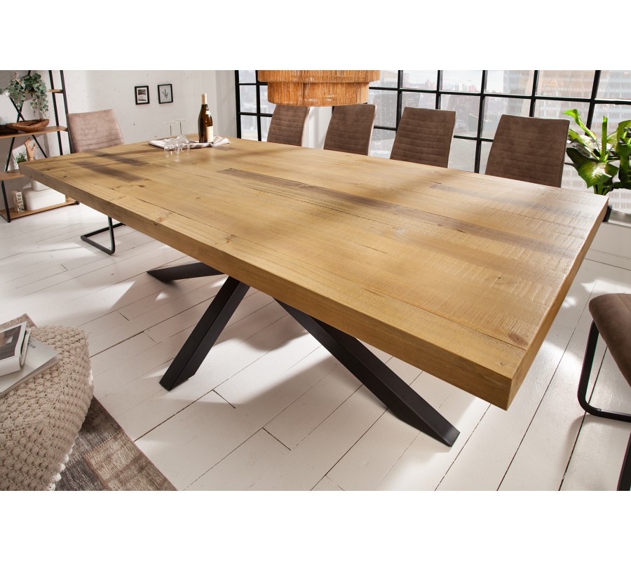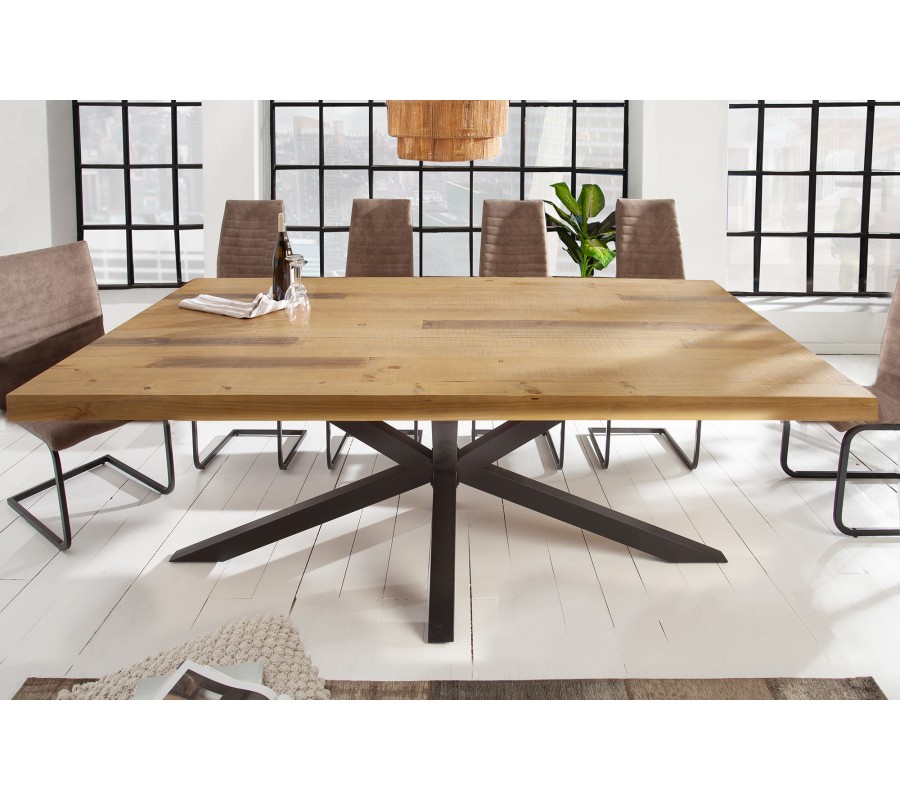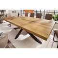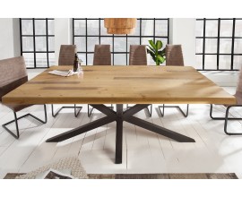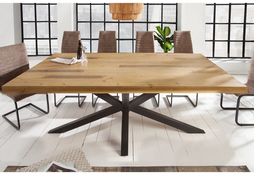 Industriálny jedálenský stôl Comedor z masívneho dreva v hnedej farbe s čiernymi kovovými obdĺžnikovými nožičkami 200 cm