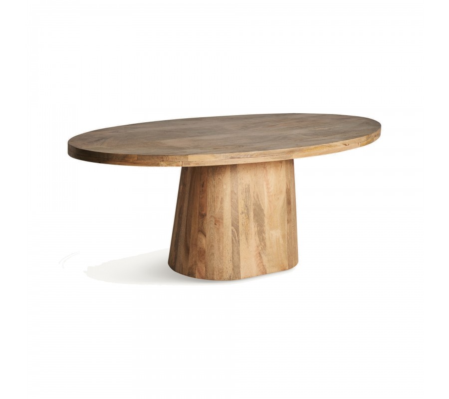 Luxusný moderný jedálenský stôl Malen v oválnom tvare s vidieckym nádychom z masívneho dreva v hnedej farbe 200 cm